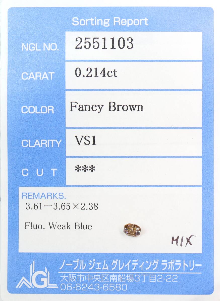 VS1!0.214ct 天然ダイヤ FANCY BROWN(ナチュラルカラー)X
