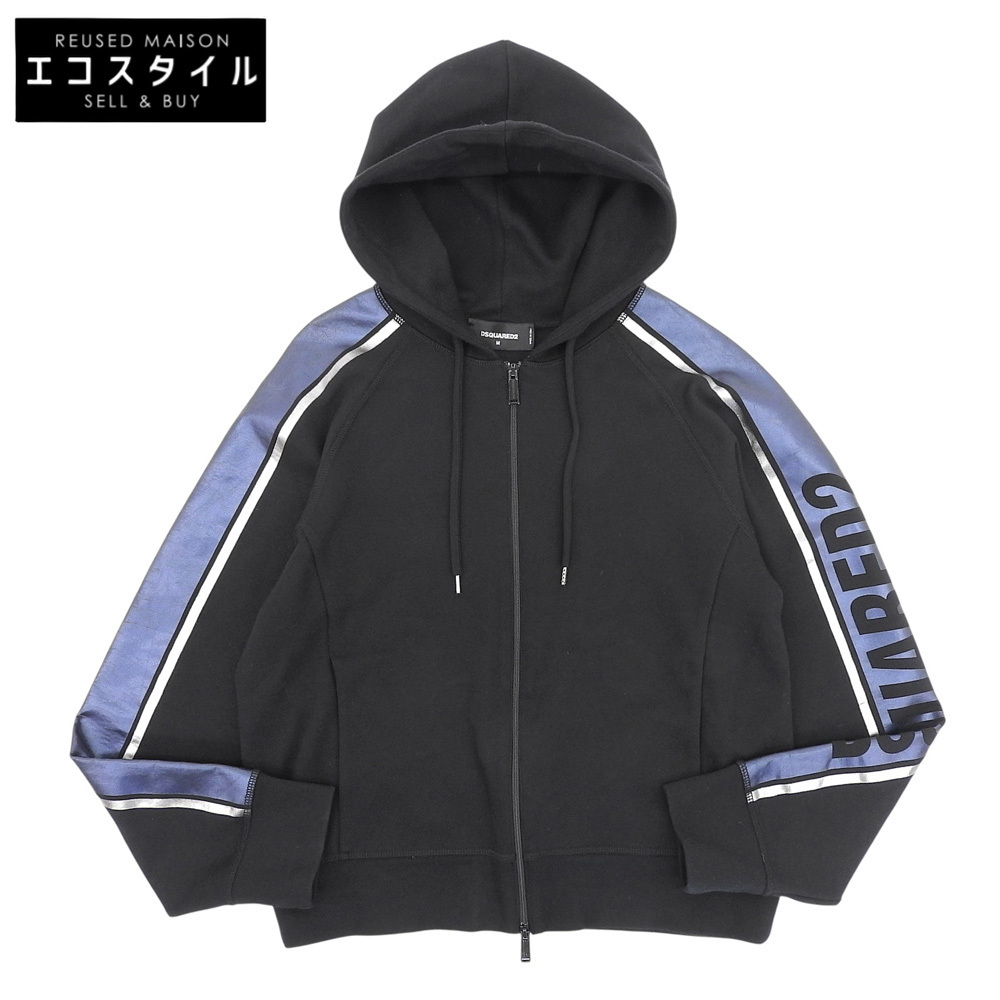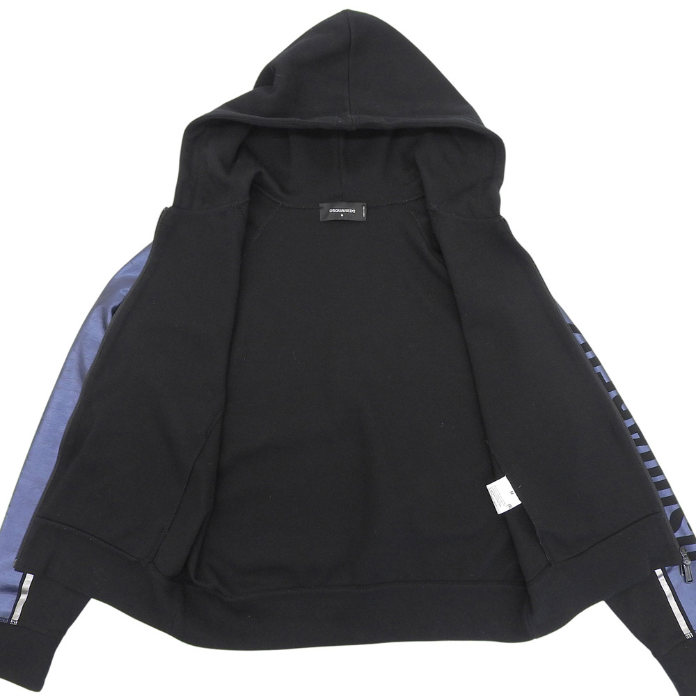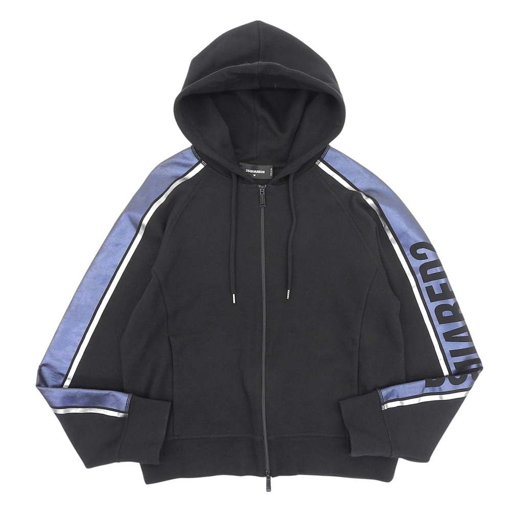 DSQUARED2 ディースクエアード アームロゴライン ジップアップパーカ トップス メンズ ブラック ネイビー M S78HG0001