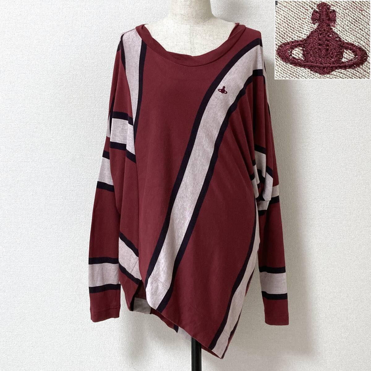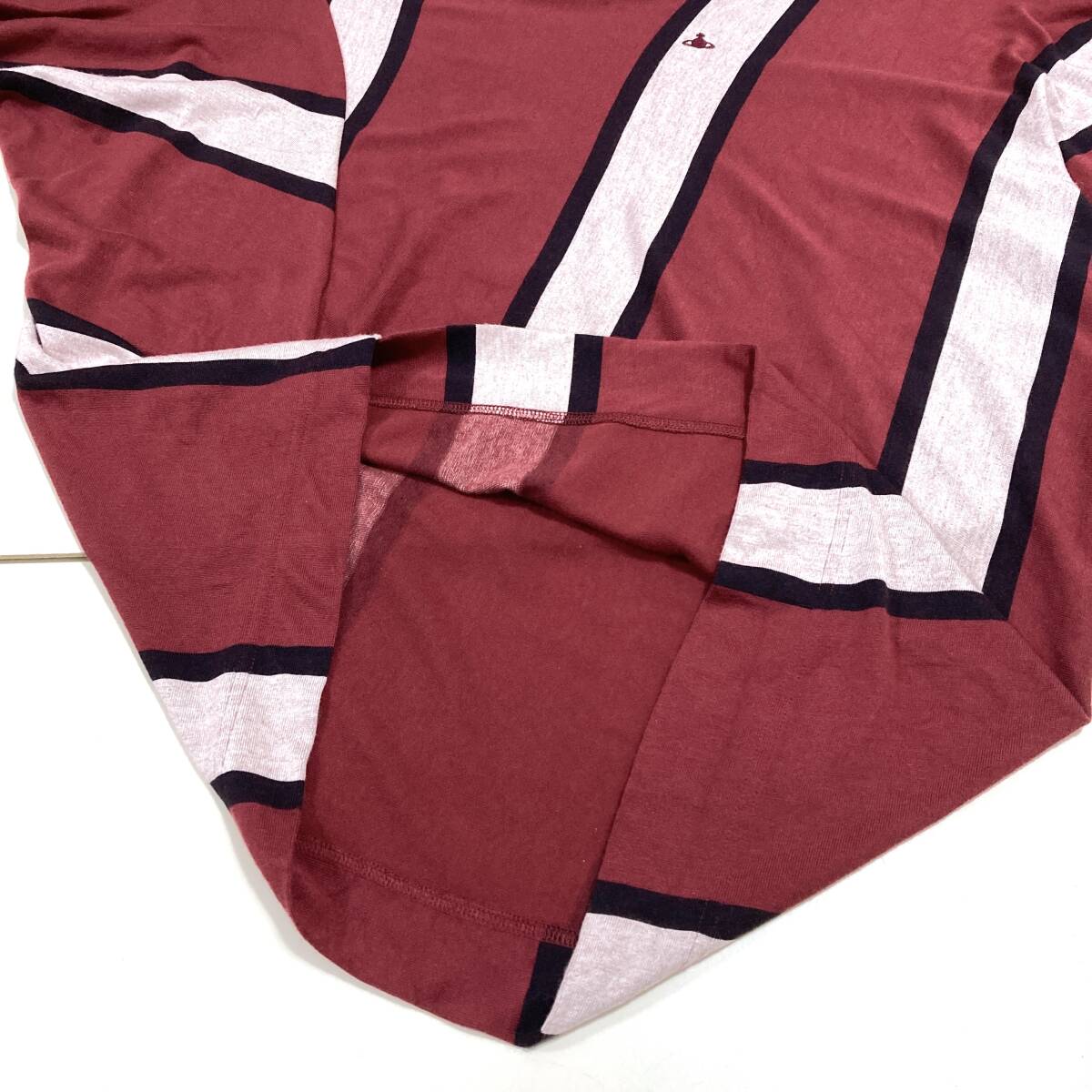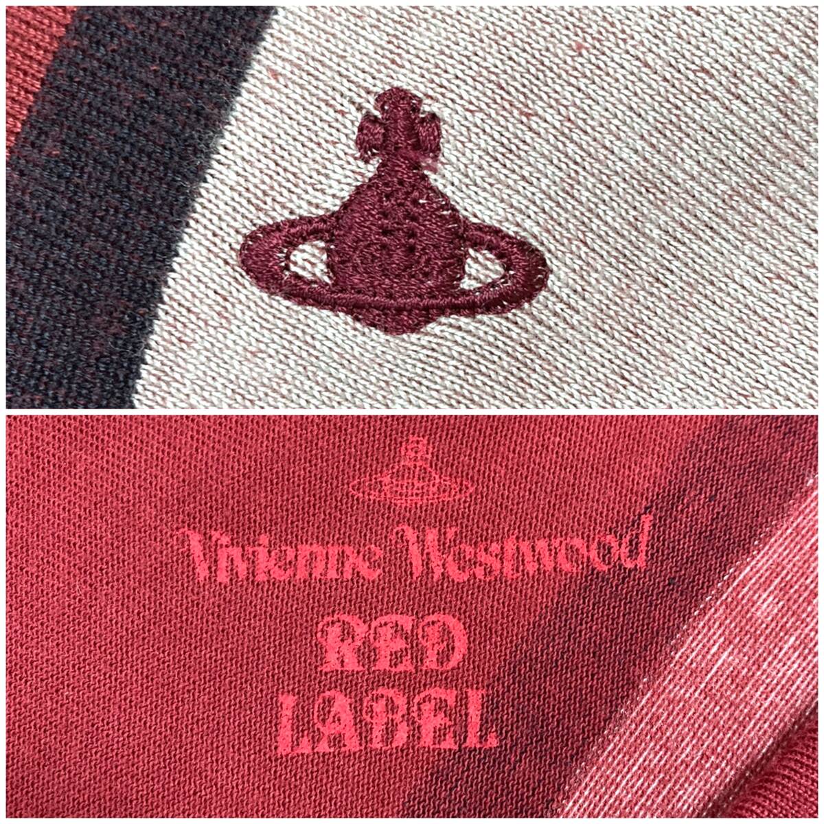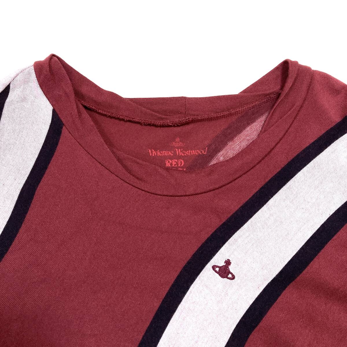 vivienne westwood RED LABEL 変形 オーブ 刺繍 ボーダー カットソー エンジ × ホワイト × ブラック系