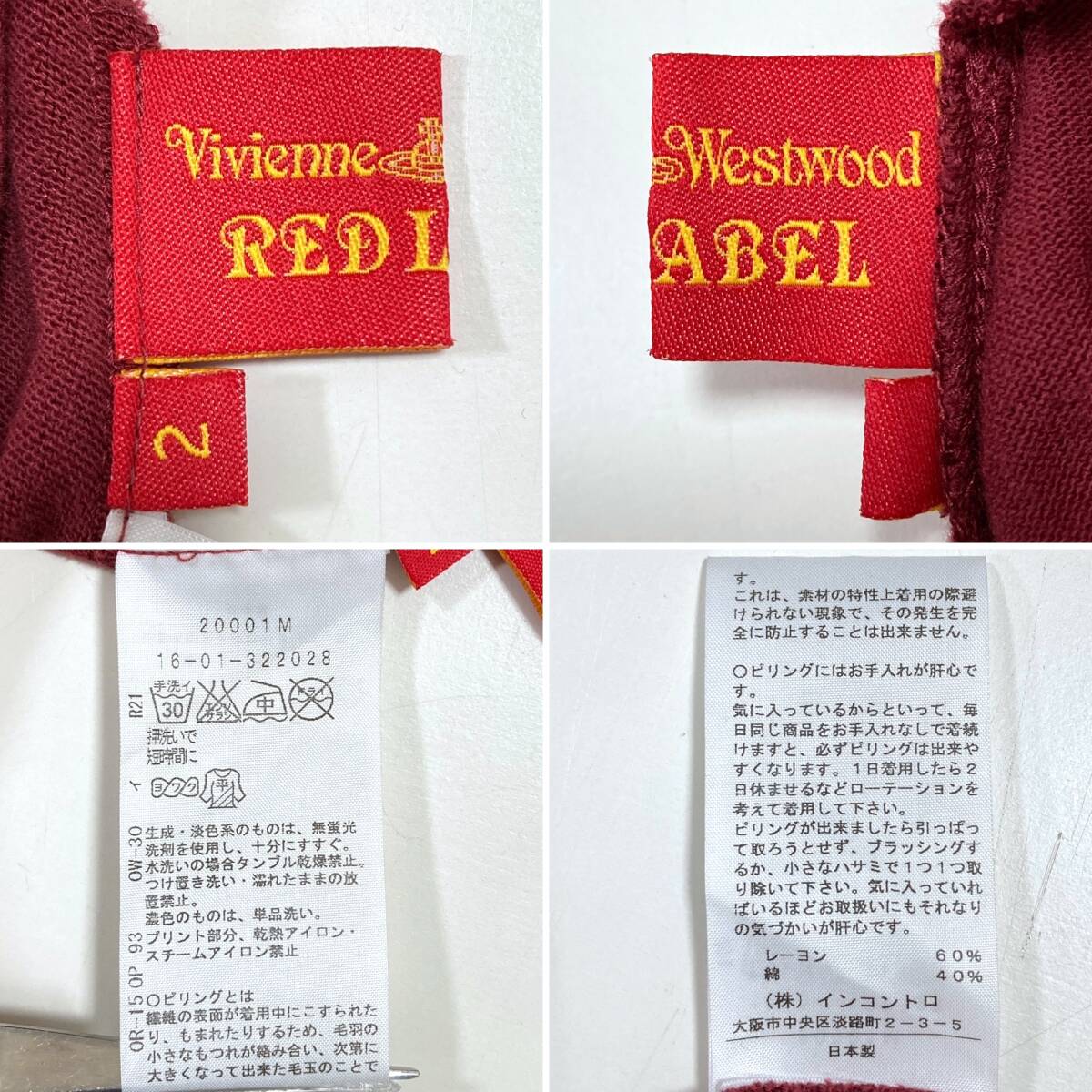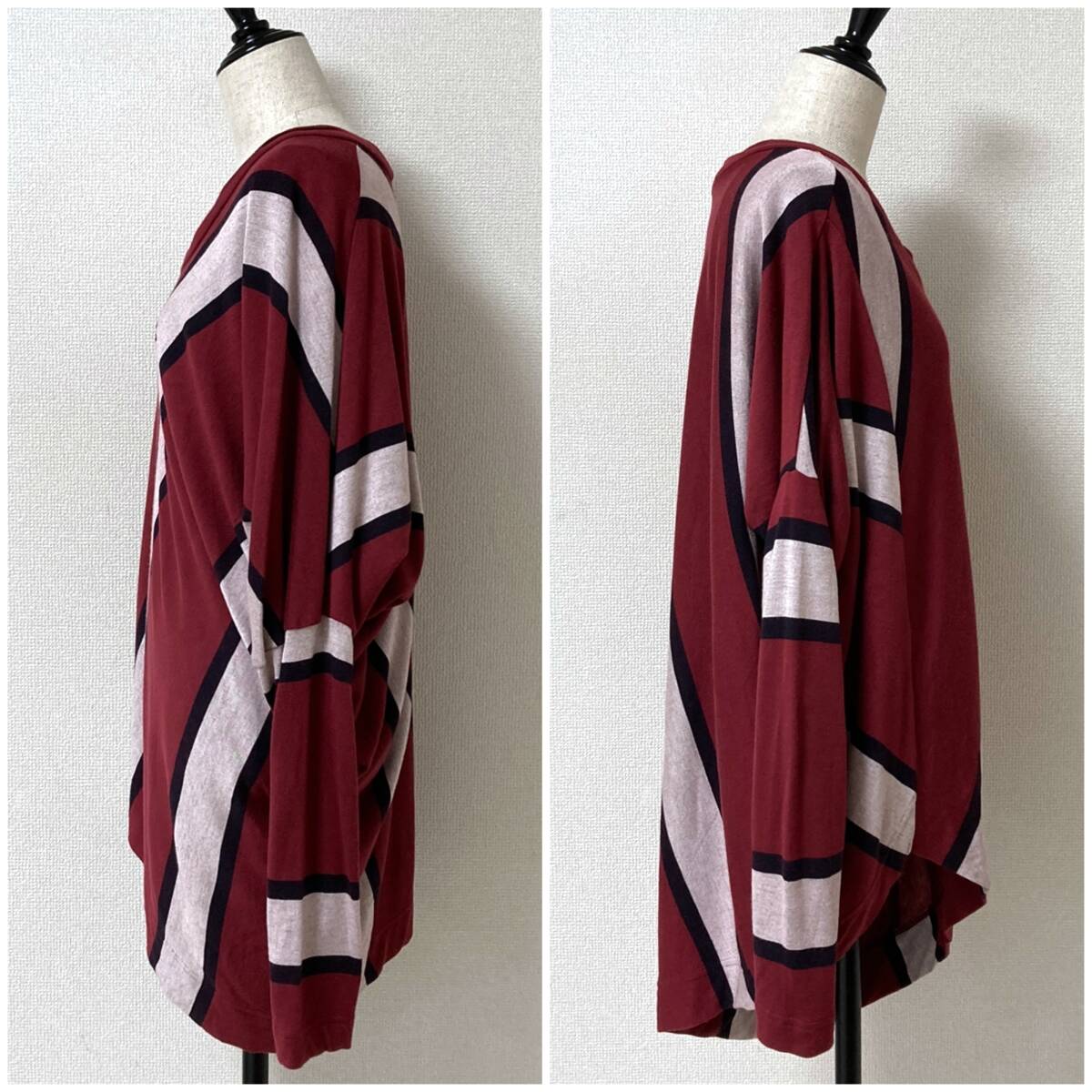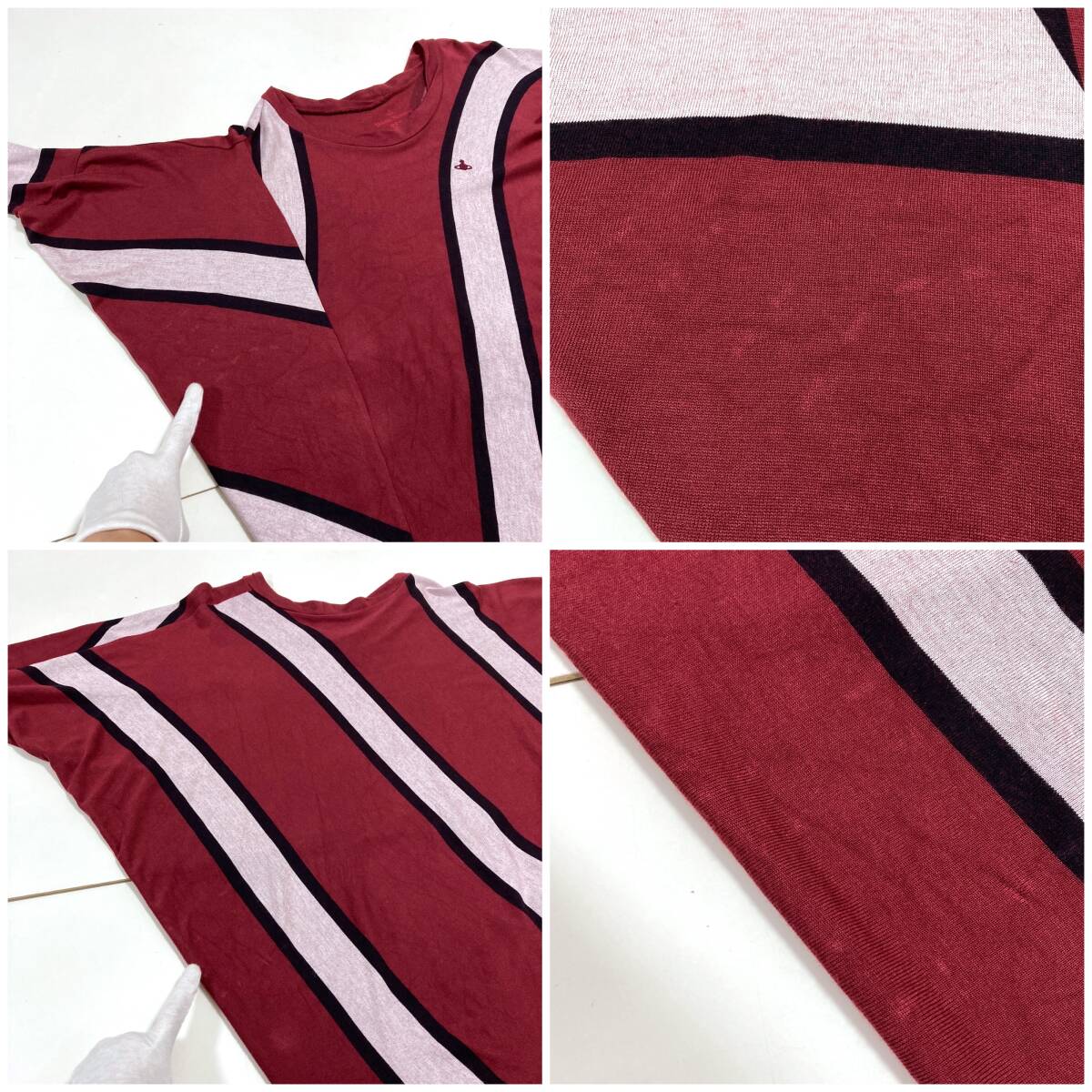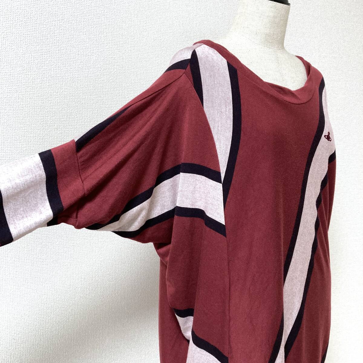 vivienne westwood RED LABEL 変形 オーブ 刺繍 ボーダー カットソー エンジ × ホワイト × ブラック系