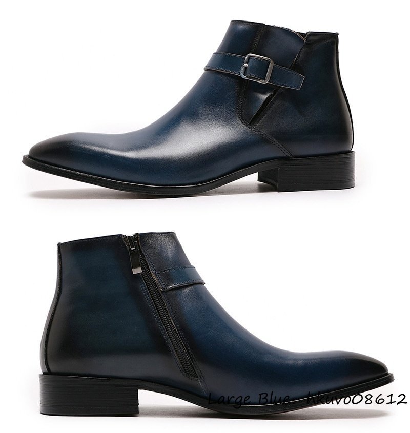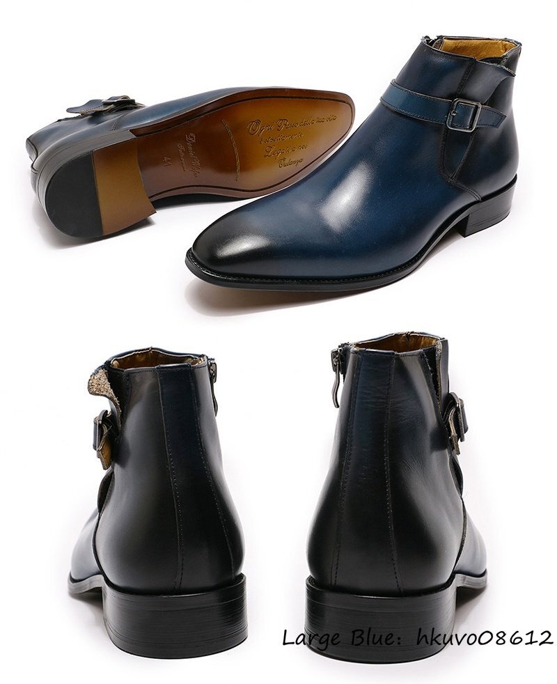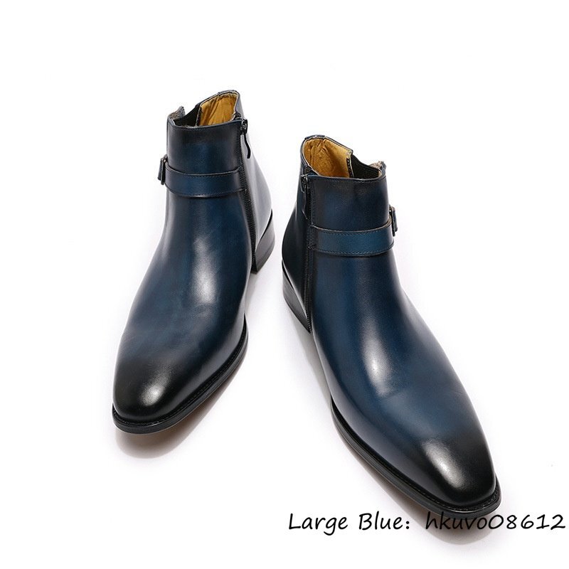 最高級*12万 マーティンブーツ メンズ ショートブーツ 本革 レザーシューズ ビジネスシューズ 牛革 職人手作り ハイカット ブルー 24.5cm