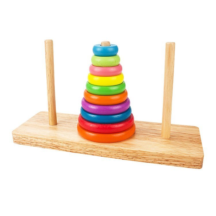 ◆数学パズル ハノイの塔 10段 カラフルな木製パズル エイジレスで楽しめる 頭の体操 脳トレゲーム 安全な水性塗料使用 対象年齢3歳以上 HANOI10S