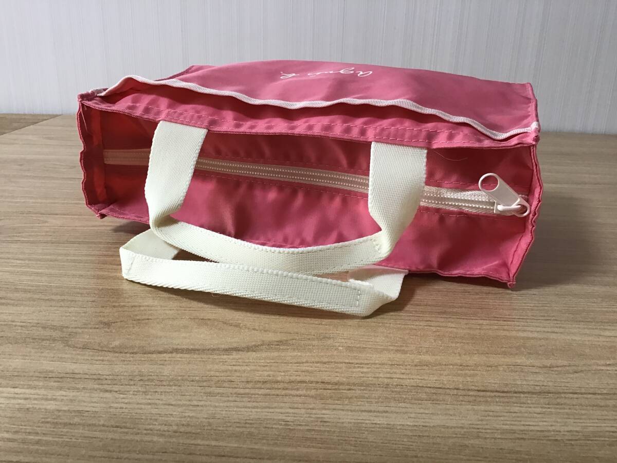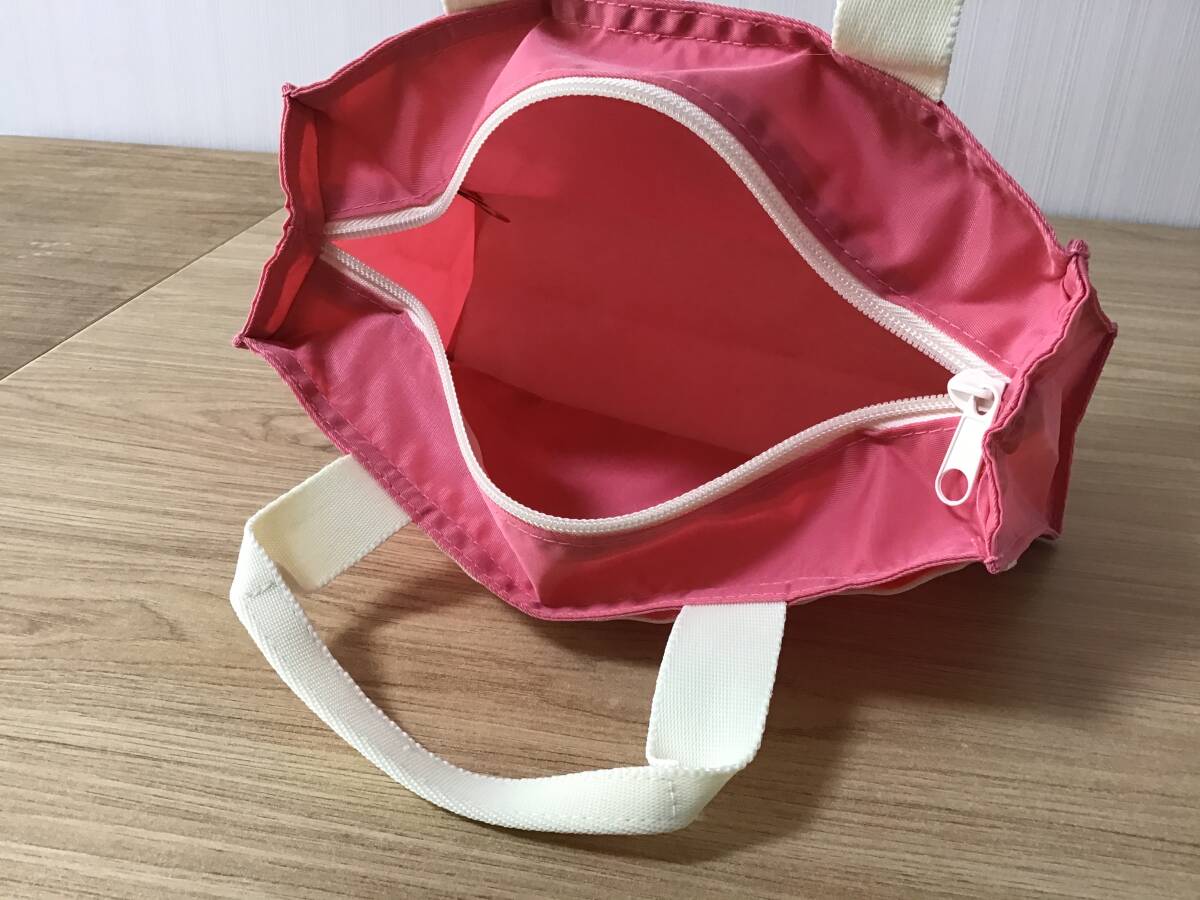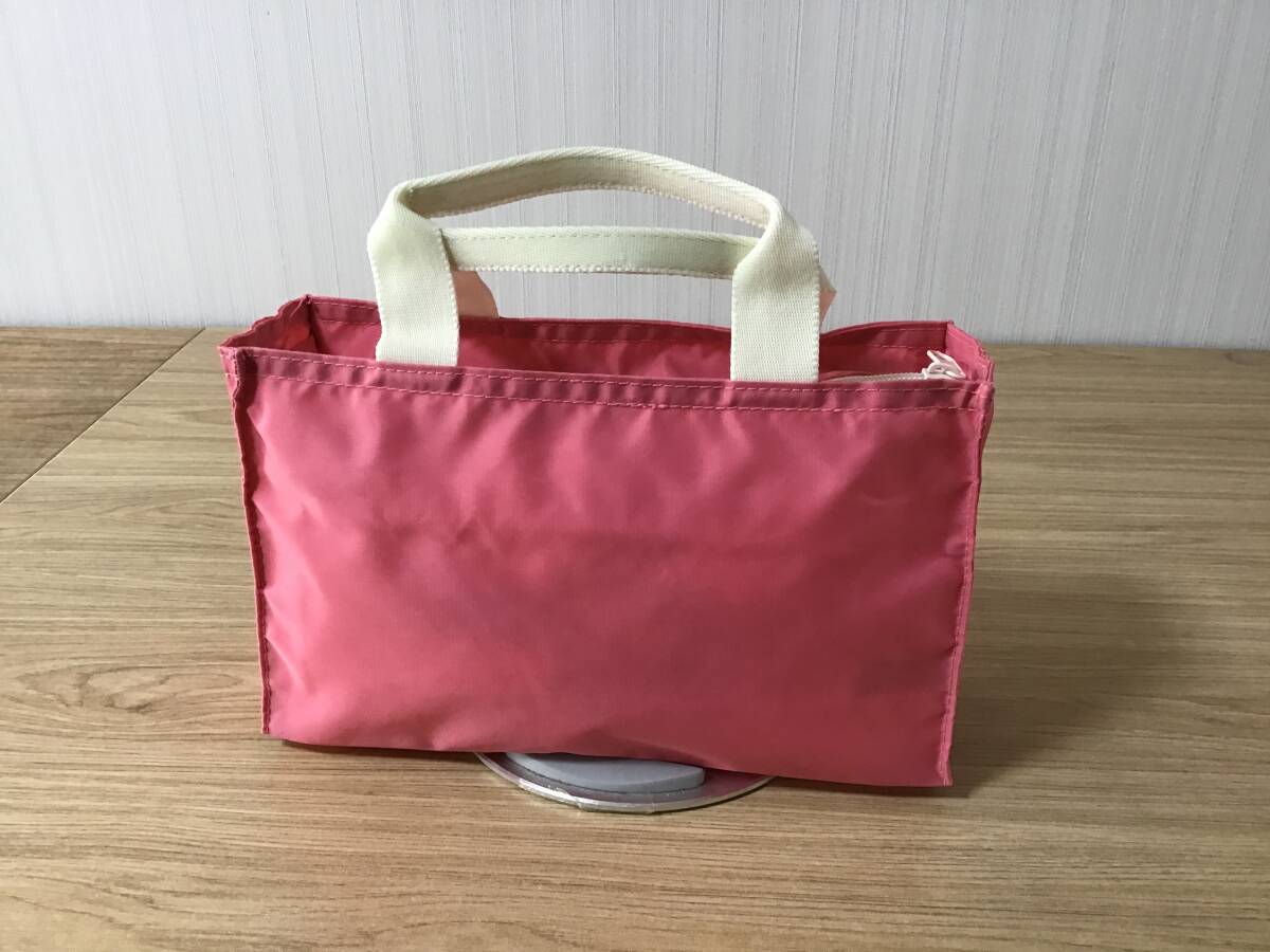 サイズ:縦14.5cm、横24cm、まち底で7.5cm、持ち手の立ち上がり10cm、開口部はファスナー