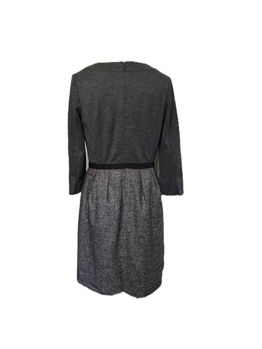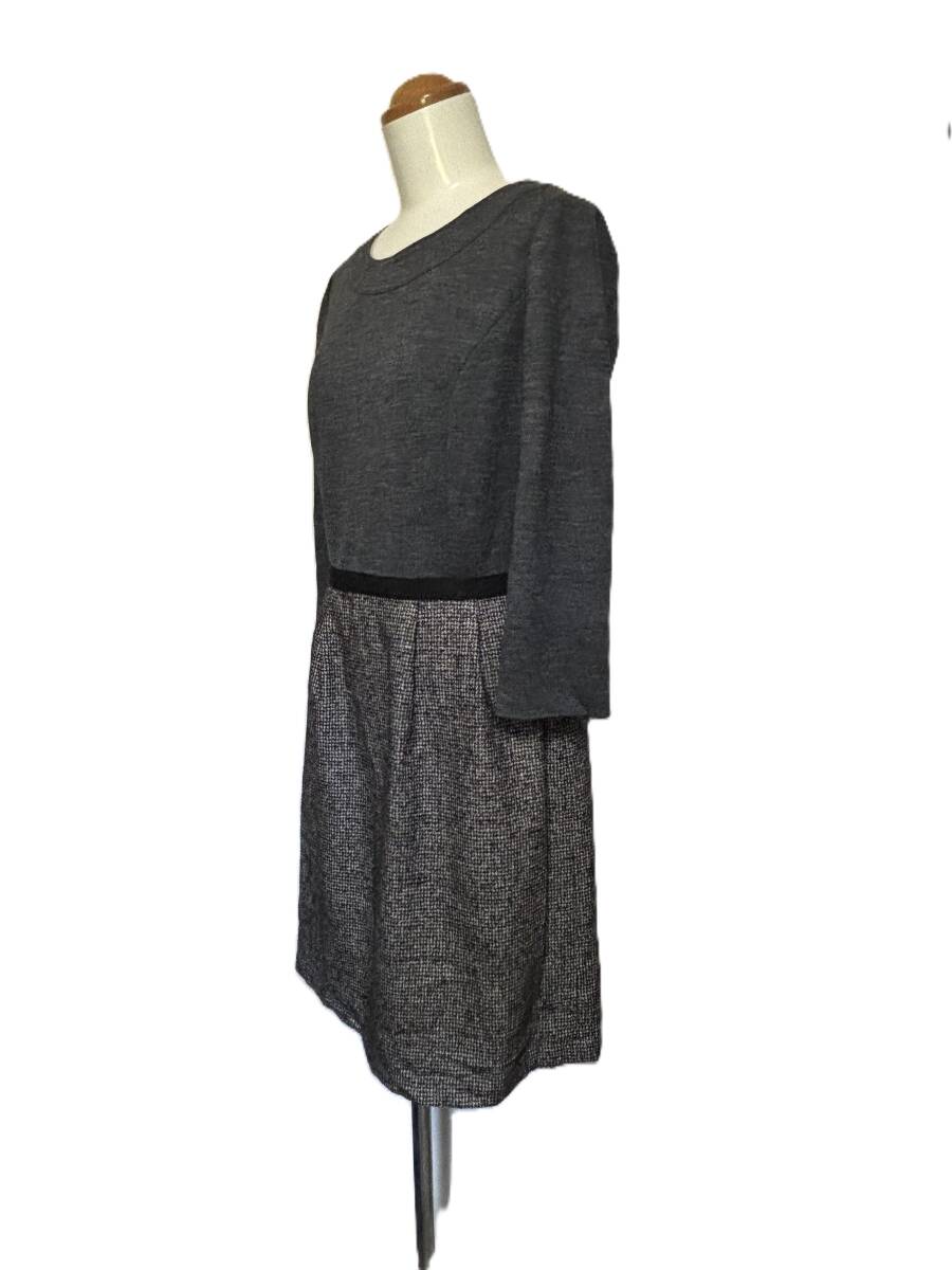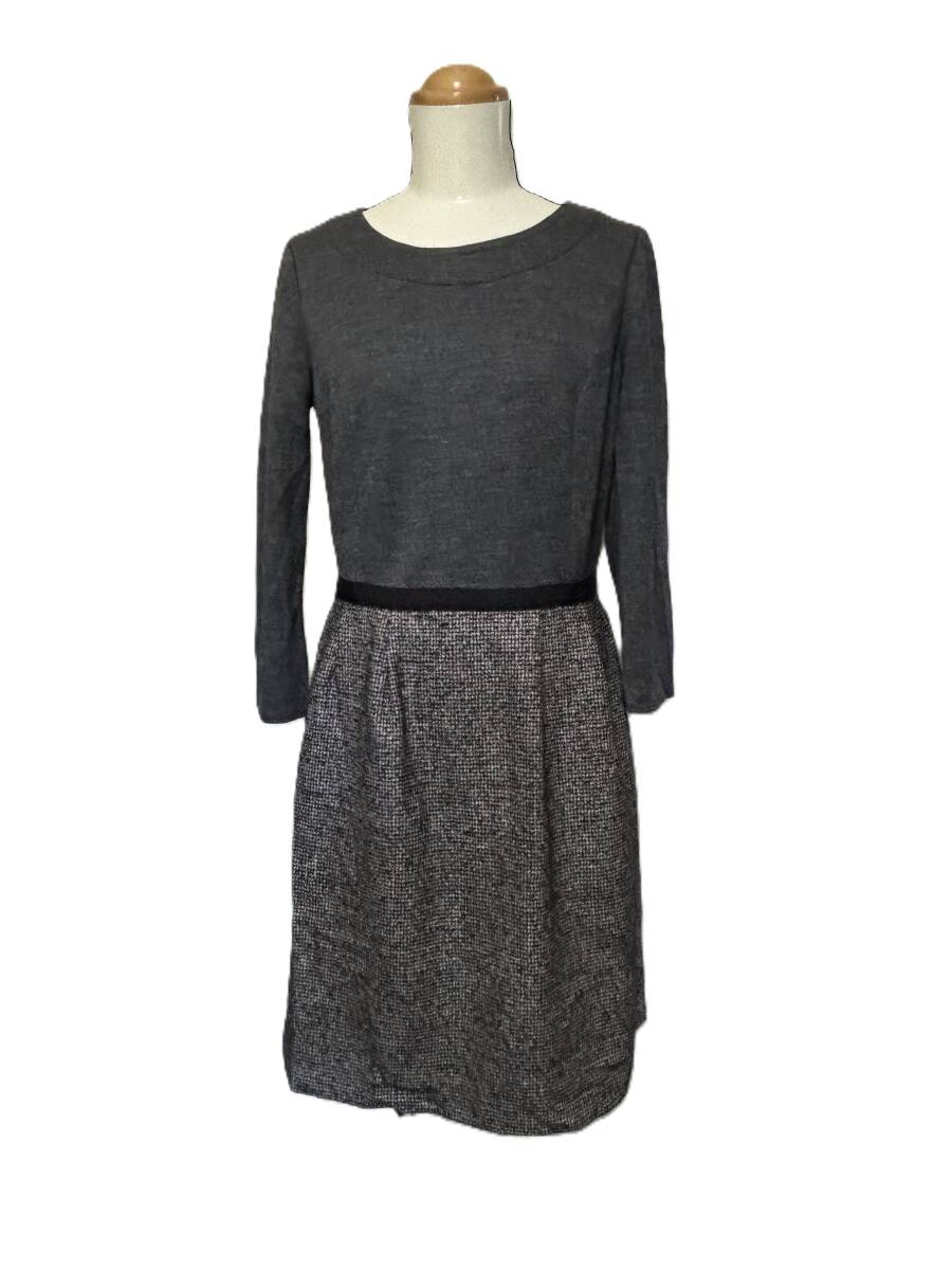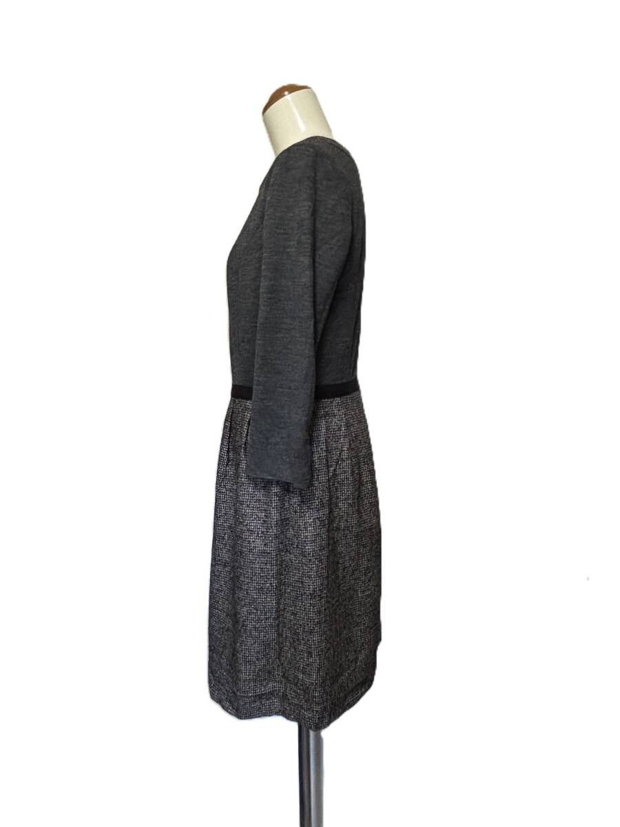 ■ 特徴:異素材ドッキングワンピース。スカート部分のミックスツイード生地が素敵です。秋冬春用。色はグレー系