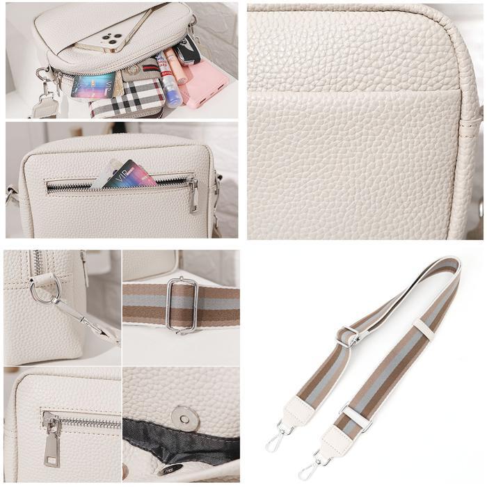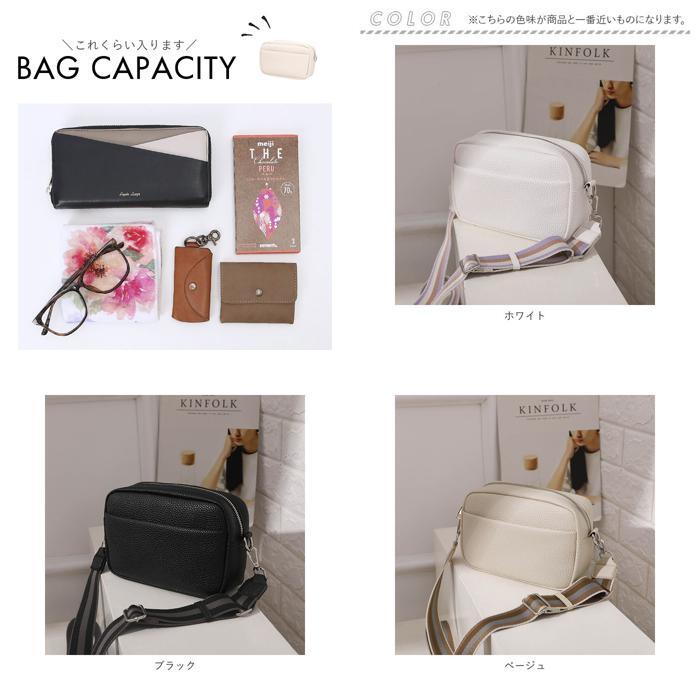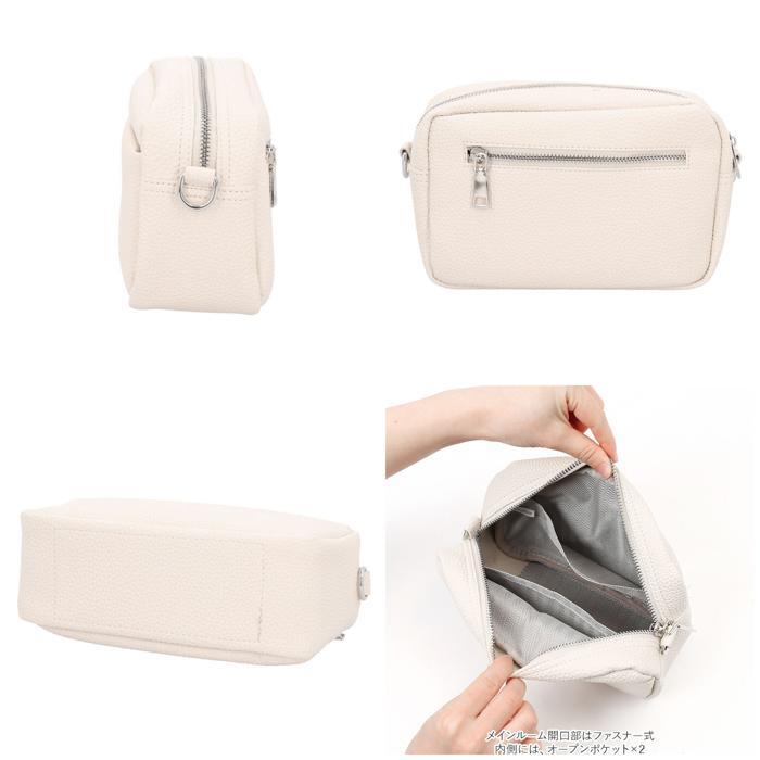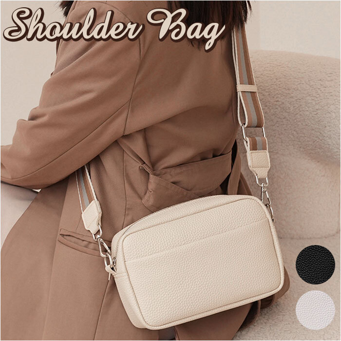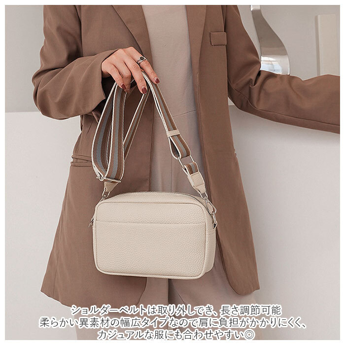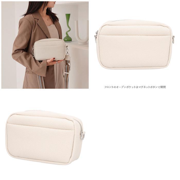 商品説明 | ・・シンプル&スマートなお出かけにピッタリなショルダーバッグ♪ ・ちょっとしたお出かけに必要なものを入れるのにピッタリなサイズ感。 ・メインルーム開口部はファスナー式。内側には、オープンポケット×2。 ・高見えする合皮素材と、ヘリンボーン柄の内生地を使用し落ち着いた雰囲気。 ・フロントのオープンポケットは定期やスマホなどをサッと取り出しやすく、マグネットボタンで開閉。 ・背面にもファスナーポケット×1を配置。 ・ショルダーベルトは取り外しでき、長さ調節可能。柔らかい異素材の幅広タイプなので肩に負担がかかりにくく、カジュアルな服にも合わせやすい◎ |