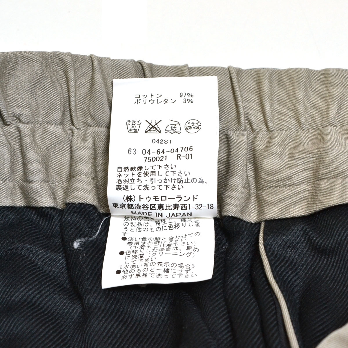 〇512960 TOMORROWLAND トゥモローランド ○イージーパンツ コットンツイル ストレッチ サイズXS メンズ 日本製 ベージュ