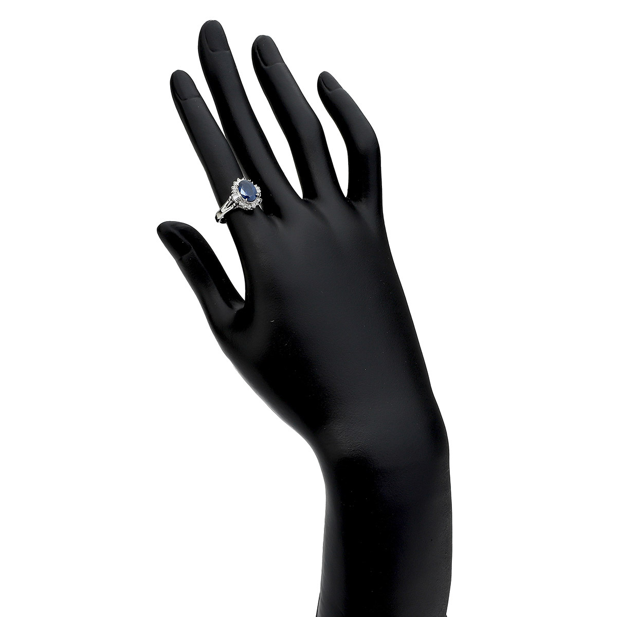 サファイアの静かで深い青とダイヤモンドの白い輝きのコントラストのあるリング。上品な色味がどのような服装にもマッチします。