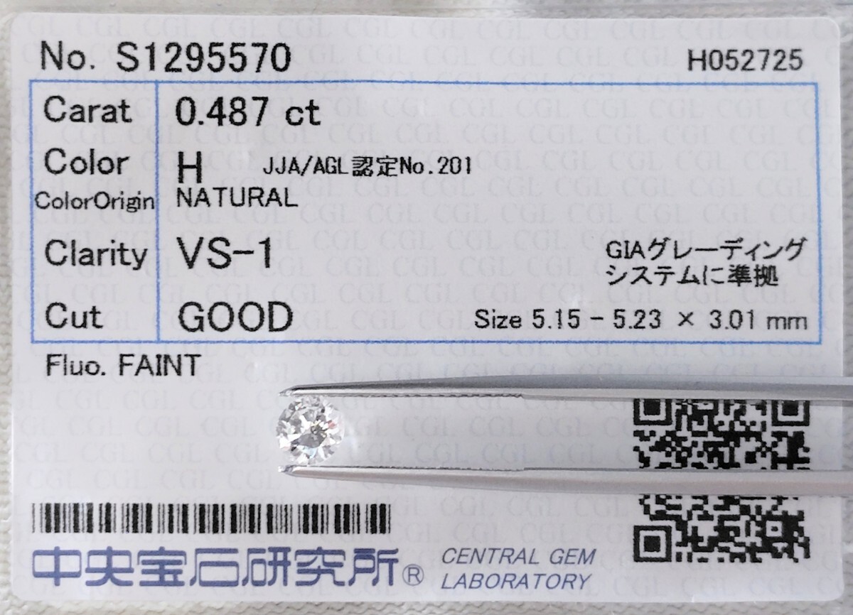 【10/4★安値〜】天然ダイヤモンド ルース 0.487ct H VS1 鑑別 CGL│A10683gz 【0.4ct】 ダイヤ diamond