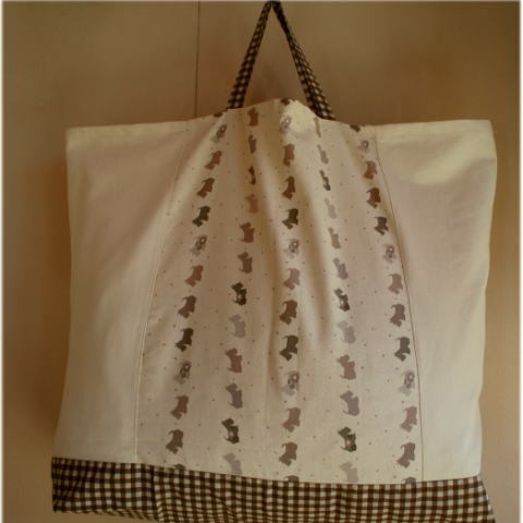 入園準備【特大サイズ】新品!2900円洗えるわんわんシルエット(ベージュ)特大昼寝布団バッグ【手作り小物】