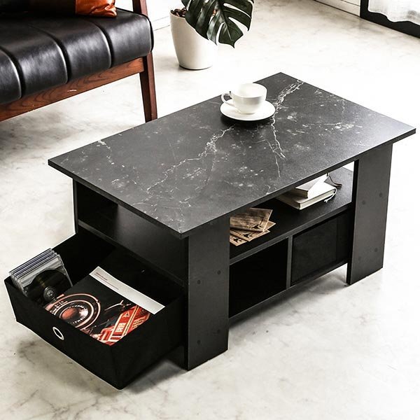 使いやすい収納付き 木製 センターテーブル 80×48cm 中下段で3分割 かんたん組立て ロータイプ 省スペース