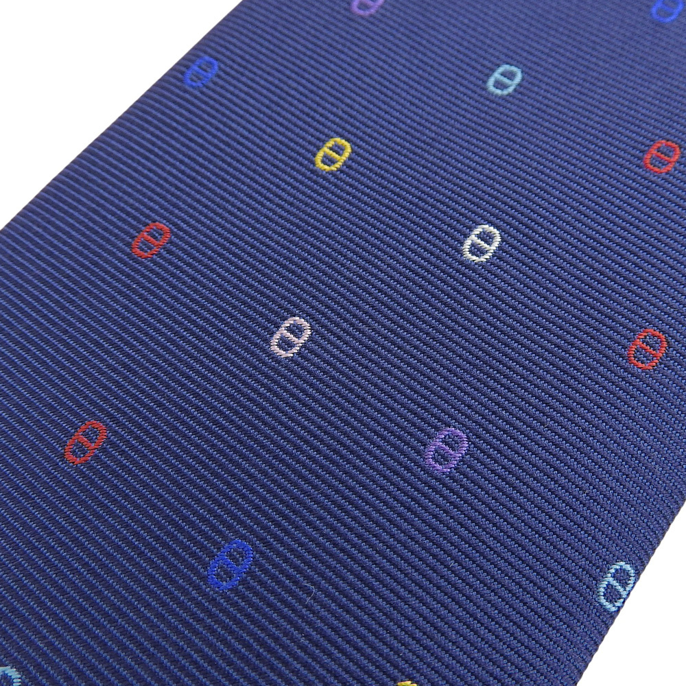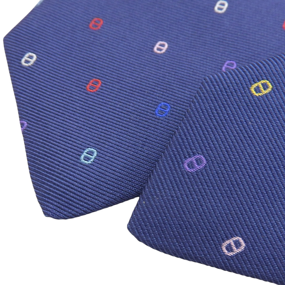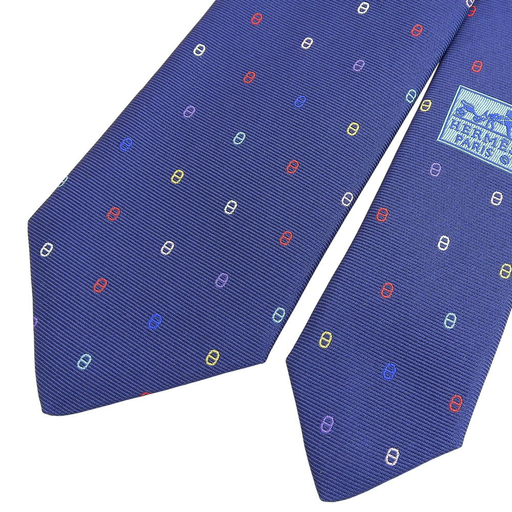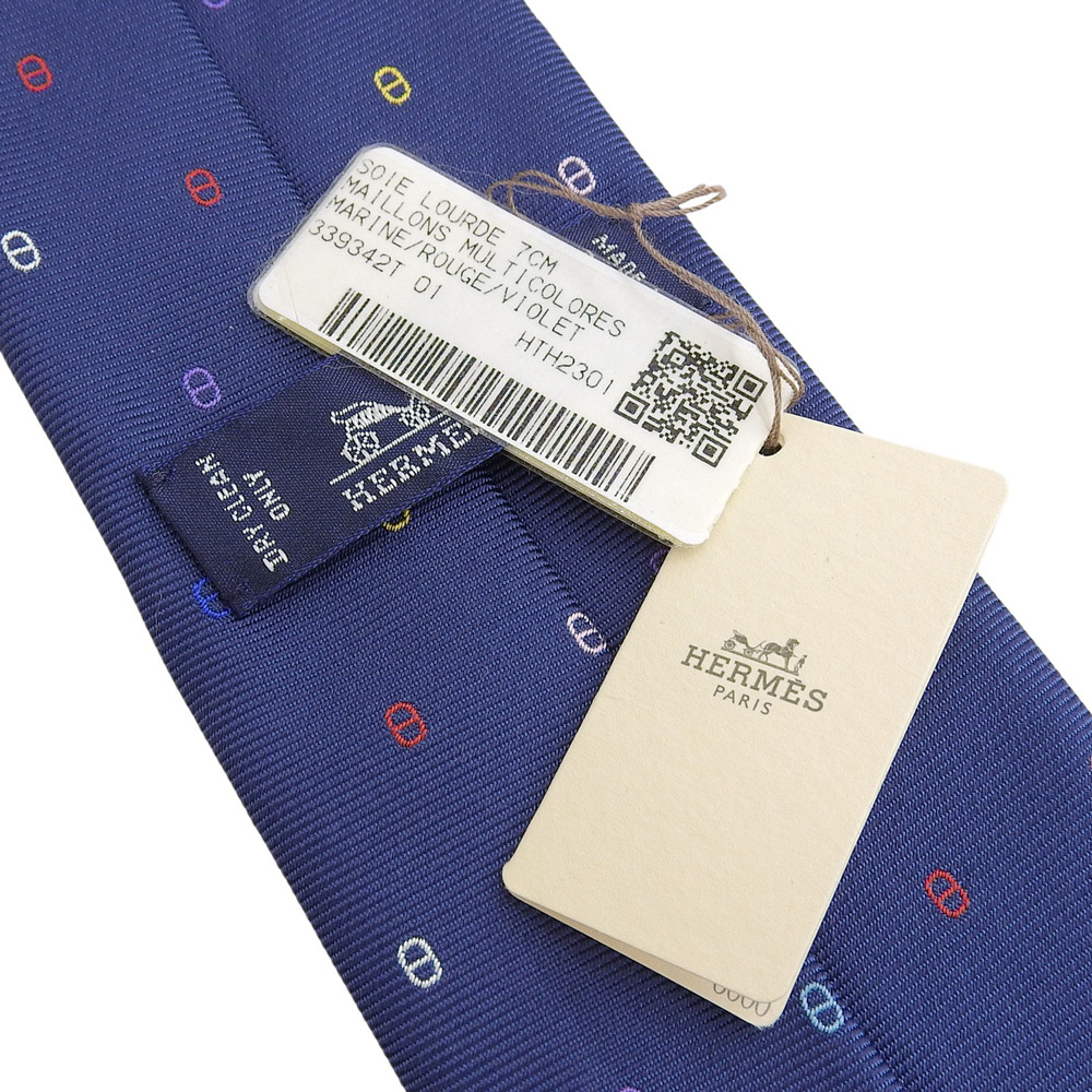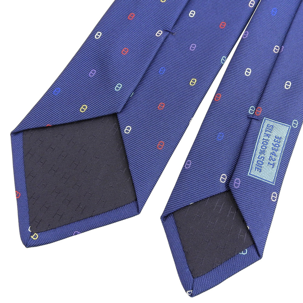 箱付未使用 エルメス 2023年商品 マルチカラー シェーヌダンクル ジャガード 刺繍 シルク100% ネクタイ ネイビー 希少 メンズ ビジネス 旅 |