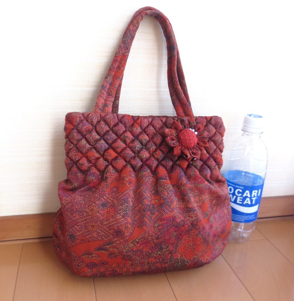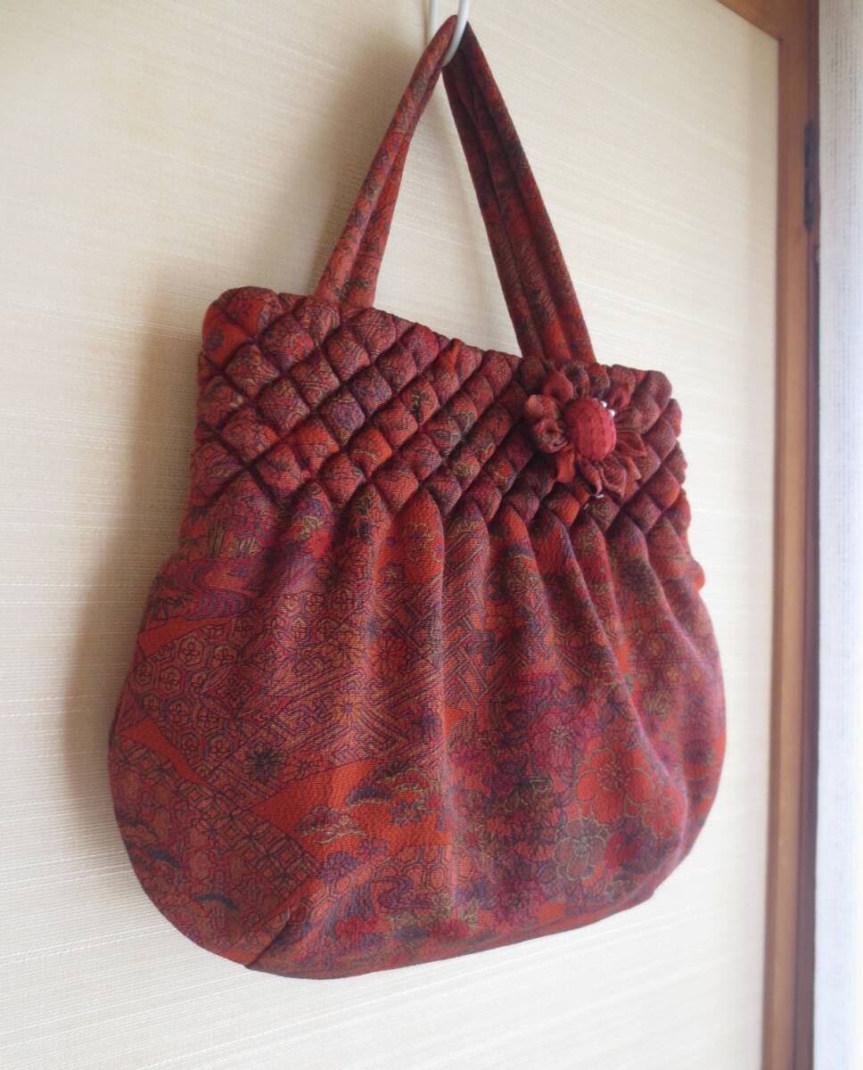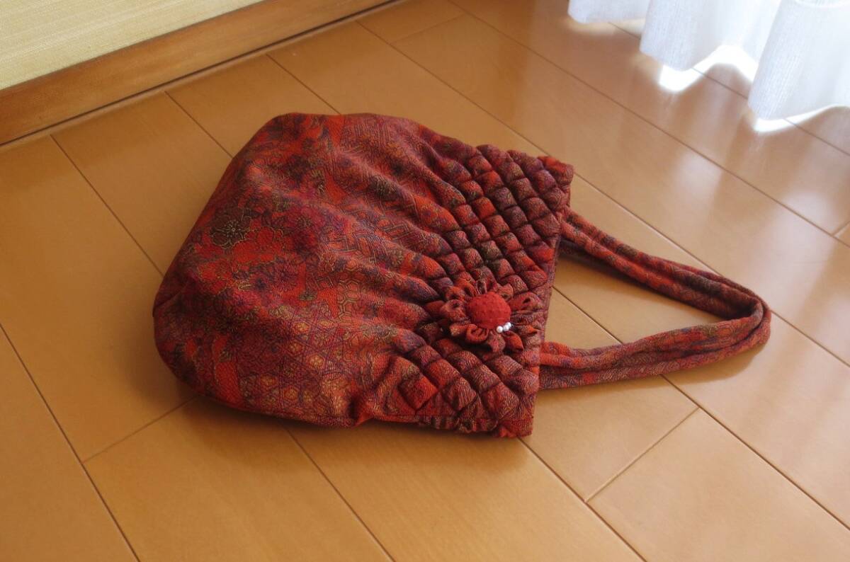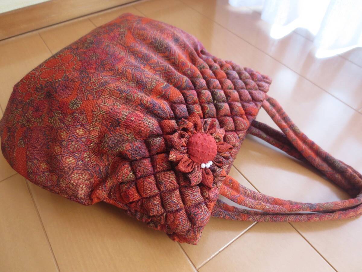出品者自身のハンドメイド、着物のリメイクバッグの手提げです
