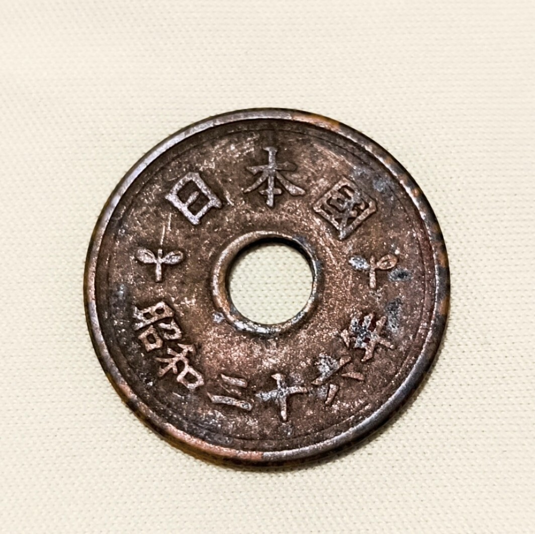 【超レア】エラーコイン 5円黄銅貨【フデ5・楷書体】 昭和26年