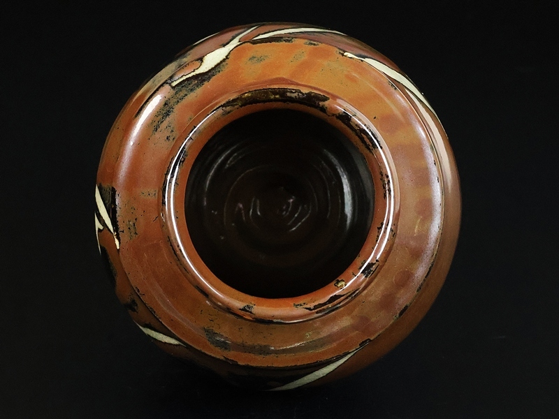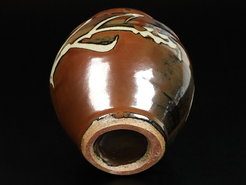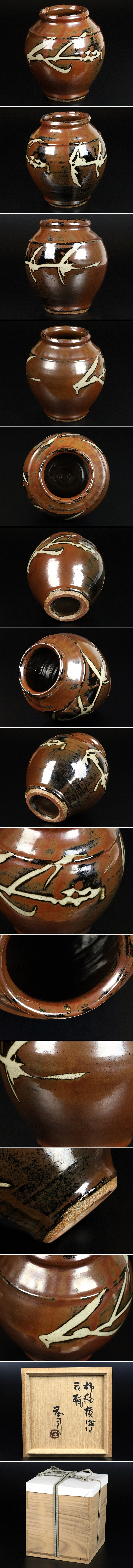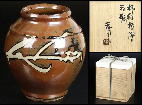 【 浜田庄司 】最上位作 柿釉抜絵花瓶 人間国宝 共箱 保証