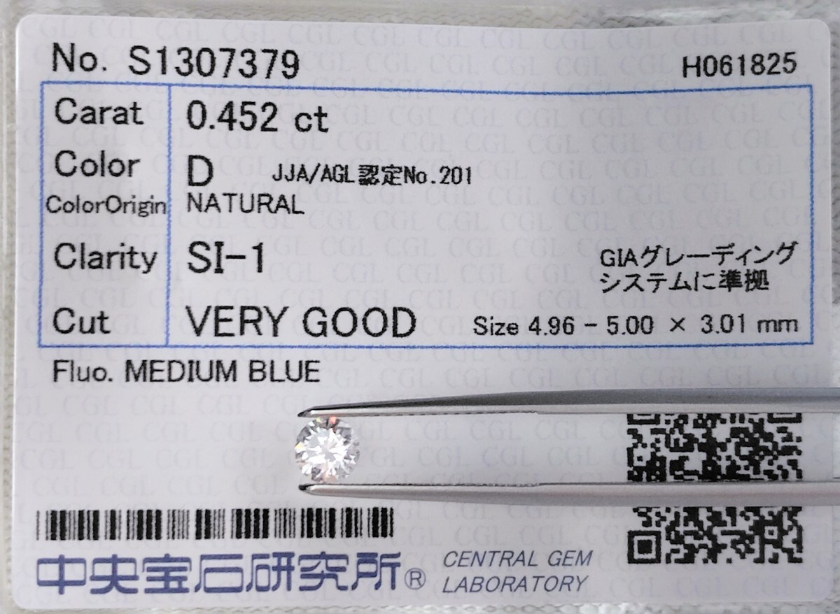 【10/4★安値〜】天然ダイヤモンド ルース 0.452ct D SI1 鑑別 CGL│A10640tz 【0.4ct】 ダイヤ diamond