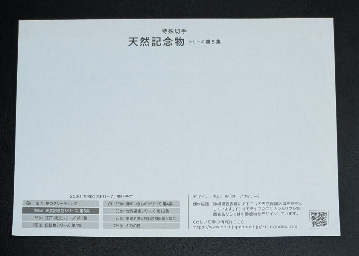 2020年・記念切手-天然記念物シリーズ第5集シート(解説書付)