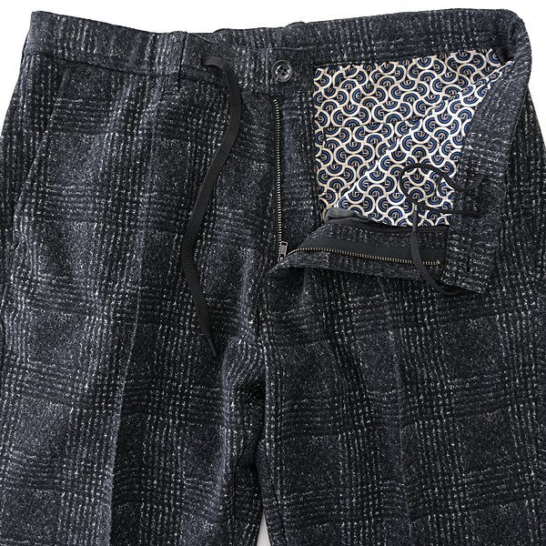 トラッドで快適なグレンチェックプリントジャージーパンツです。 重厚感があるにもかかわらず、ソフトなタッチの4wayストレッチジャージー生地なので、リラックスできる快適な穿き心地です。 裏面はパイルのように起毛させたインレイ編みを採用しているので、心地良さと保温性に優れているのが特徴です。 快適なジャージー素材ながら、緩やかなテーパードラインを描く美脚シルエットです。 生地を摘まんで縫い上げるプリーツ仕上げにより、どんなに動いても消えない永久クリースラインを実現し、品ある面持ちに仕上げています。 顔立ちする表情の生地なので、ON-OFF自在に着回せるコストパフォーマンスの高さも魅力のアイテムです。 【デザイン】 ・ノータック ・ジッパーフライ ・テーパードシルエット ・ウエストにゴムとドローコード入り |