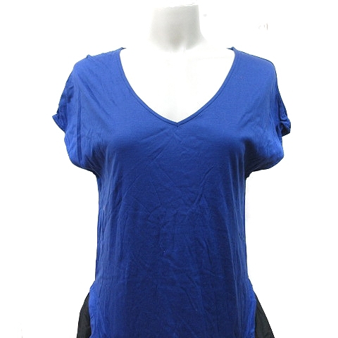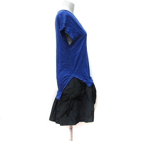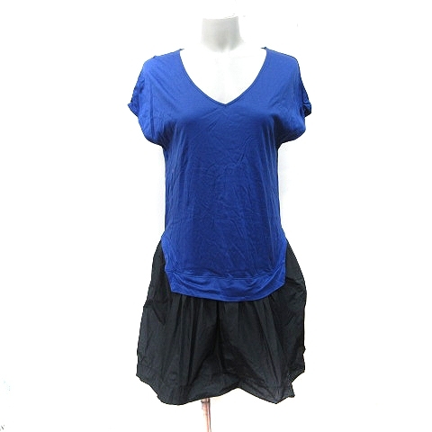 シップス SHIPS シンゾーン Shinzone ワンピース ひざ丈 フレンチスリーブ ドッキング F 青 ブルー 黒 ブラック /YI レディース