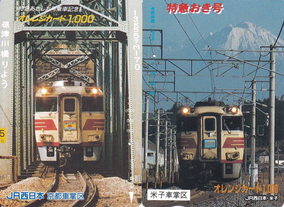 使用済オレンジカード JR西日本 京都車掌区 あさしお乗車記念Ⅱ 米子車掌区 特急おき号 1000円券2枚組 説明文参照