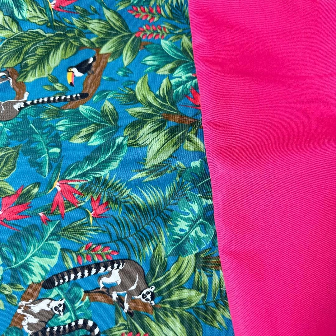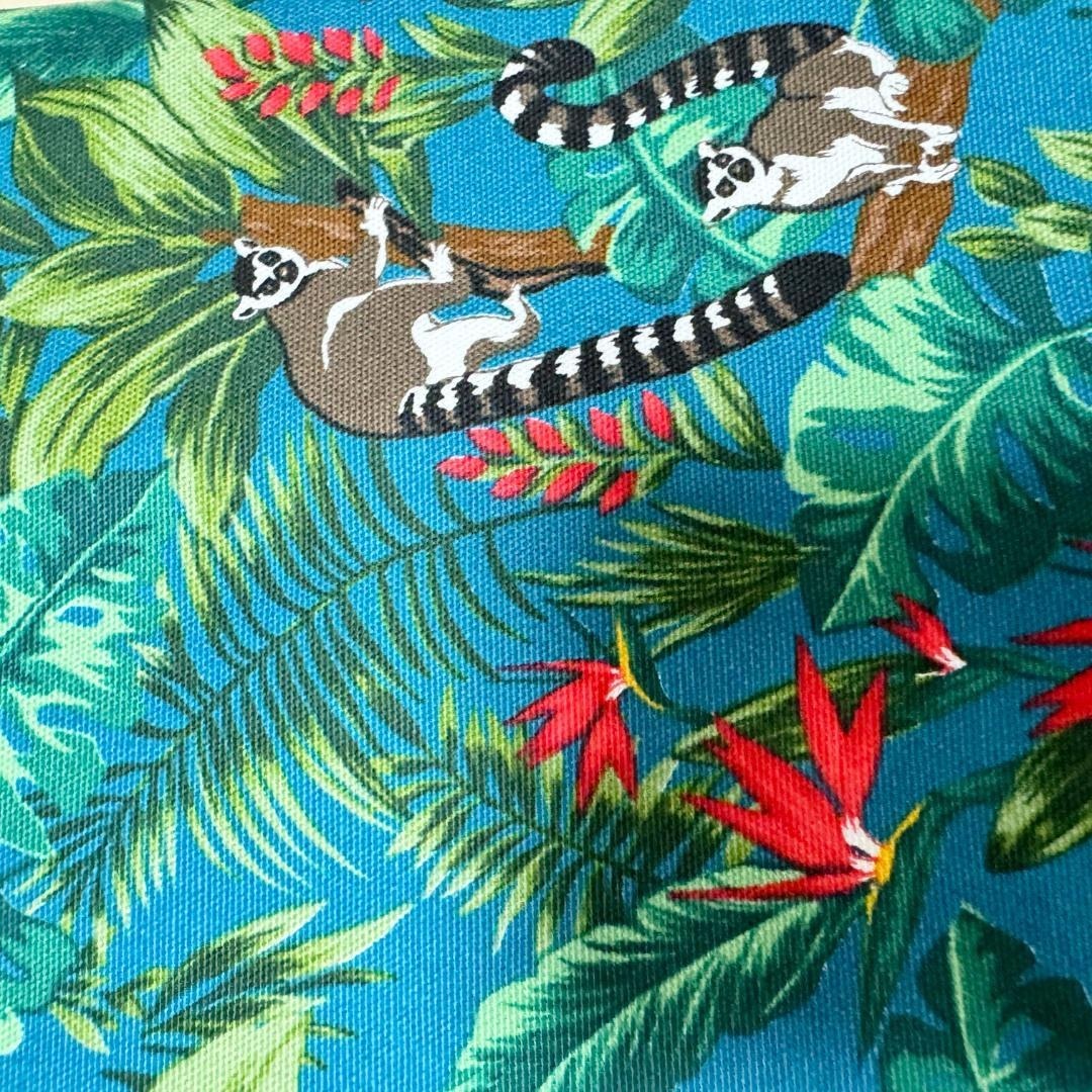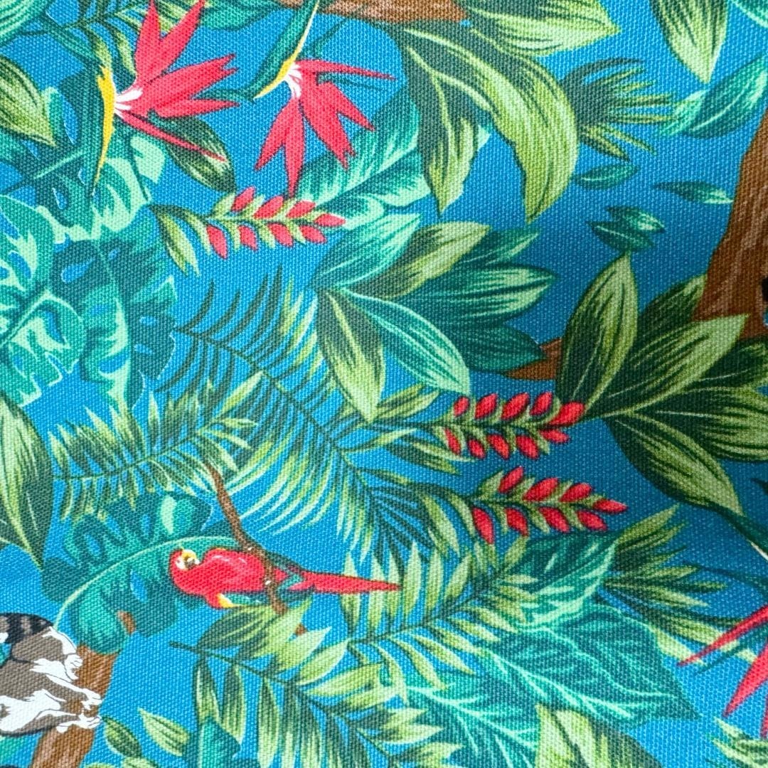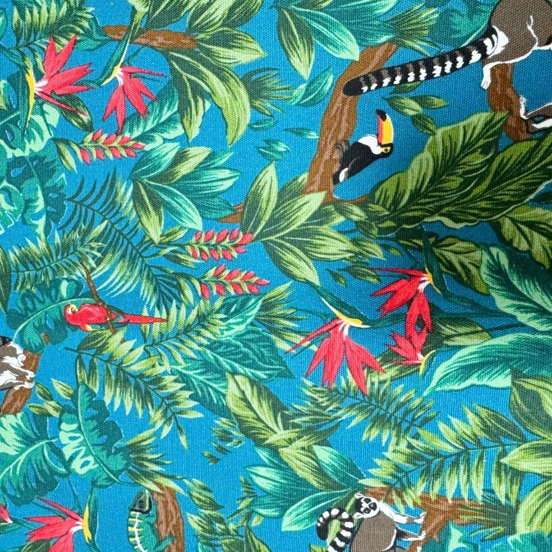 鮮やかトロピカルな動物と植物が描かれたオックス生地と、