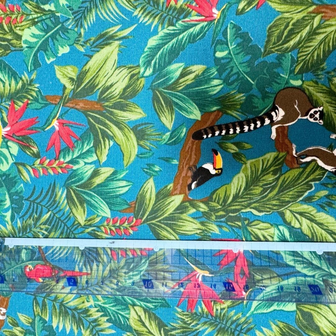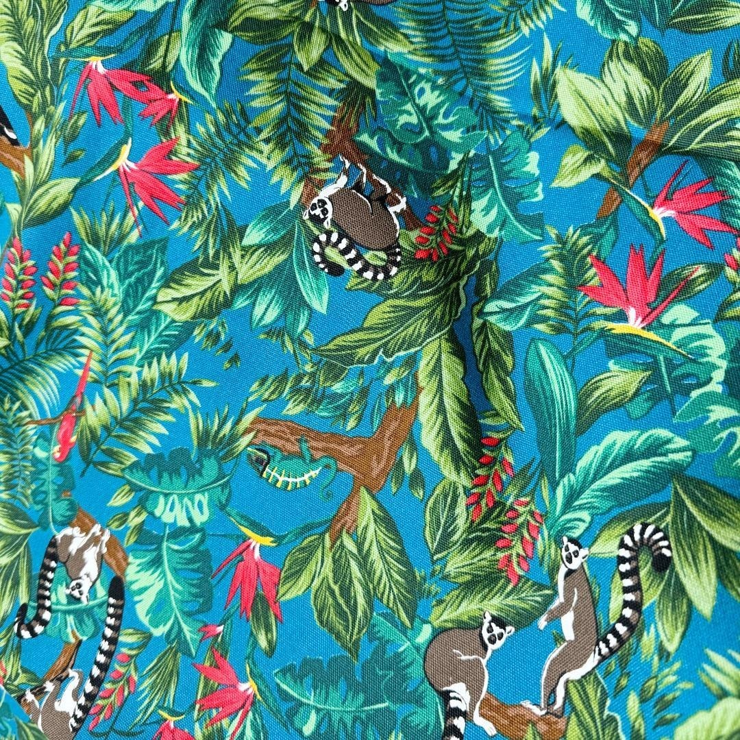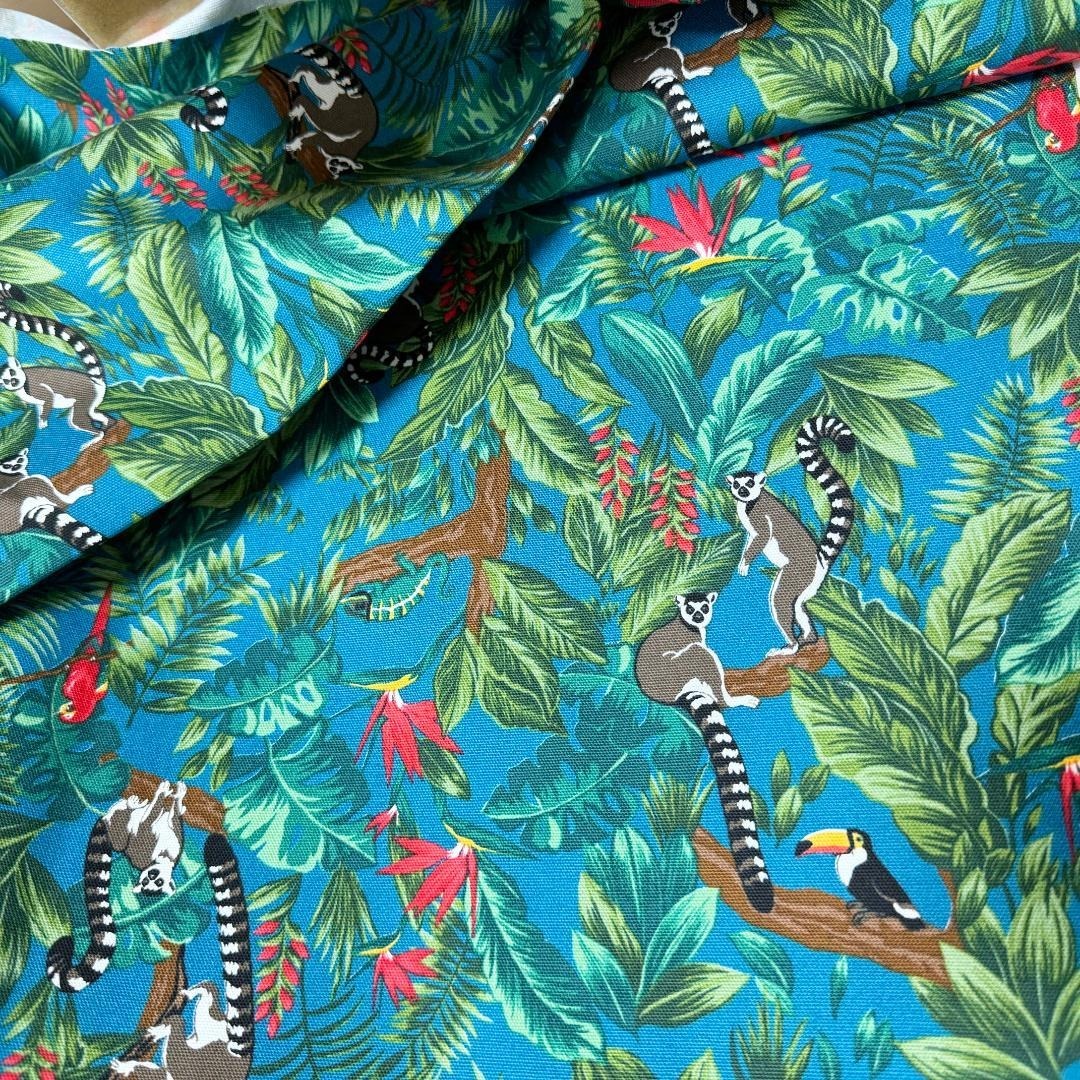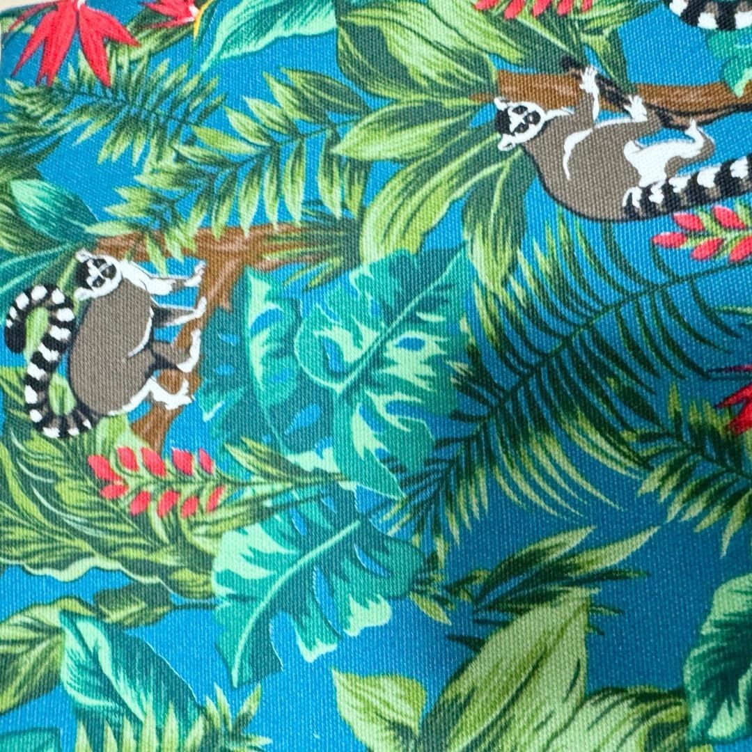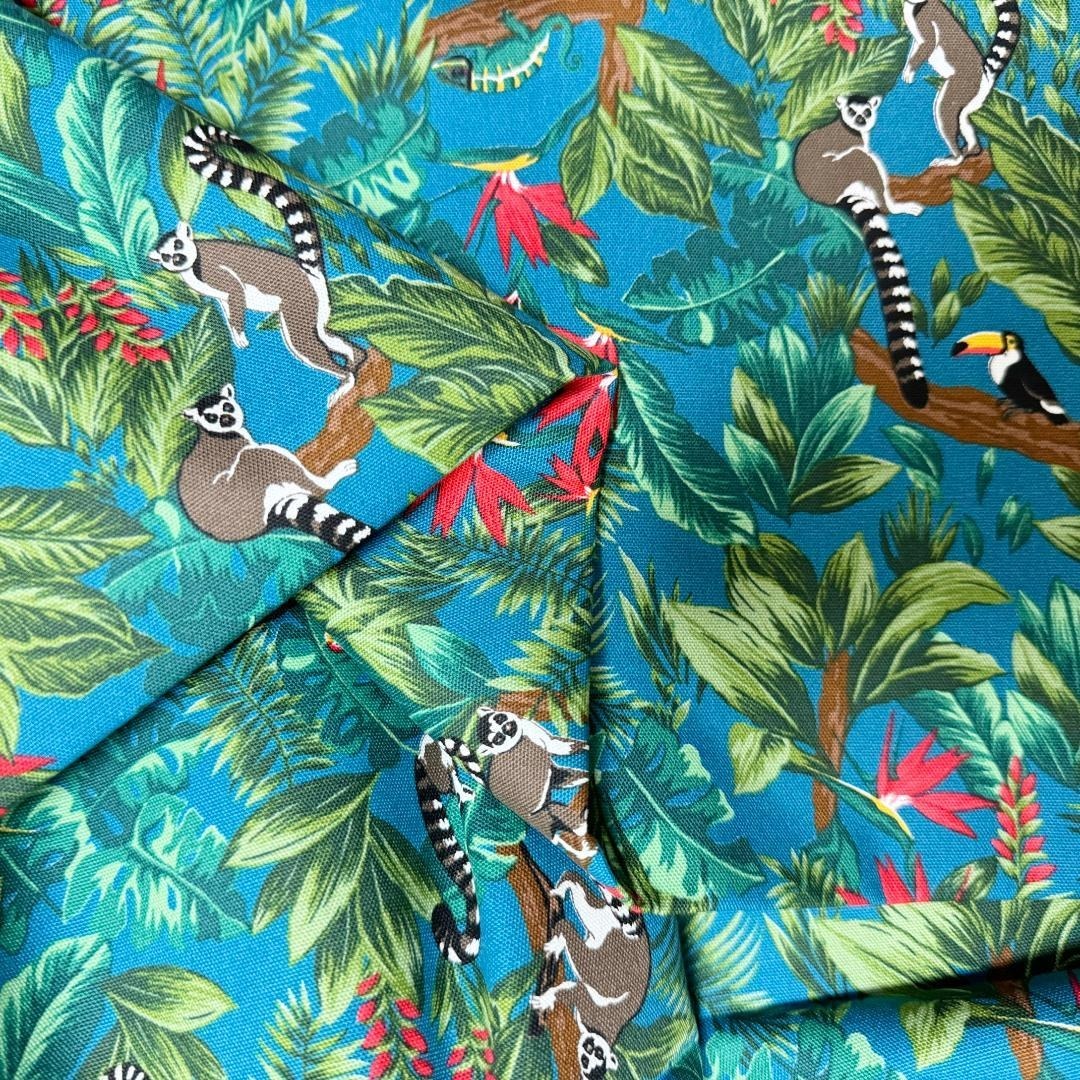 鮮やかトロピカルな動物と植物が描かれたオックス生地と、