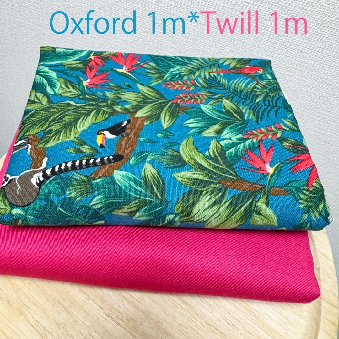 特価ラス1トロピカルな動物と葉柄★無地ピンク★オックス生地ツイル生地1mセット布