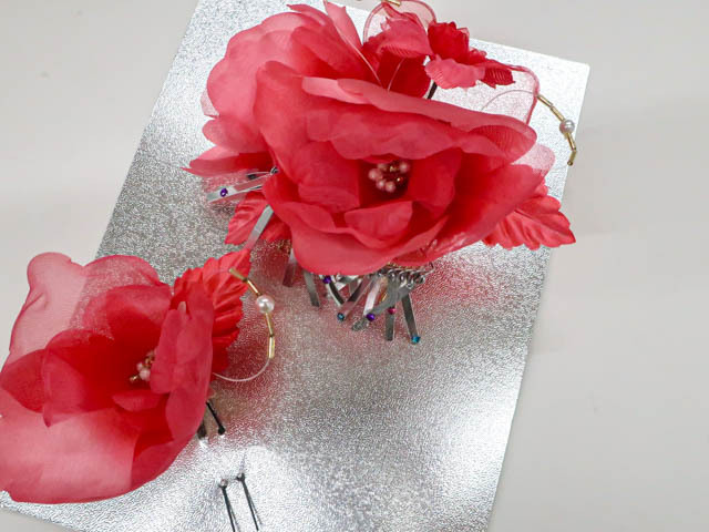《京都一輝堂》リサイクル着物 和装小物 髪飾り 花 2個セット 箱入り 25w08-9889
