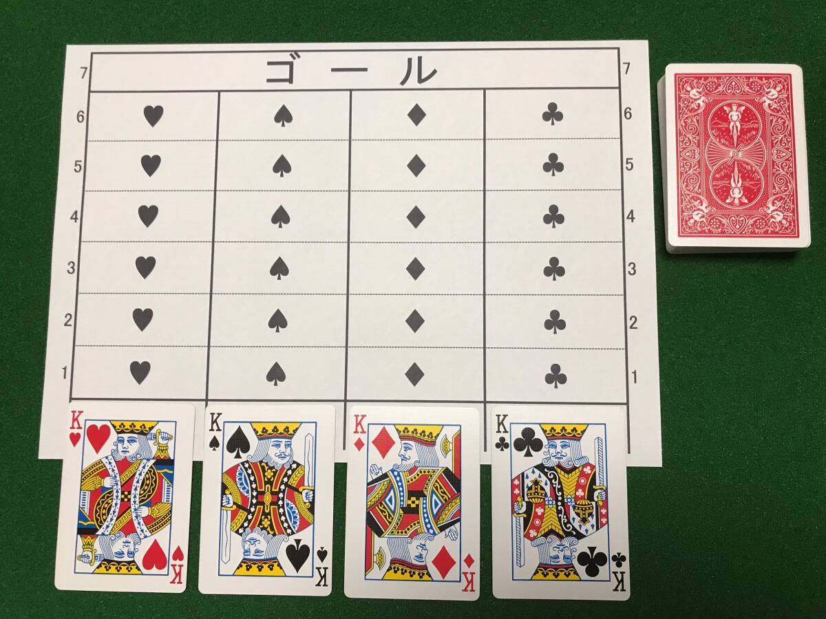 1組のトランプからハート・スペード・ダイヤ・クラブの代表として、4枚のK(キング)を取り出します。