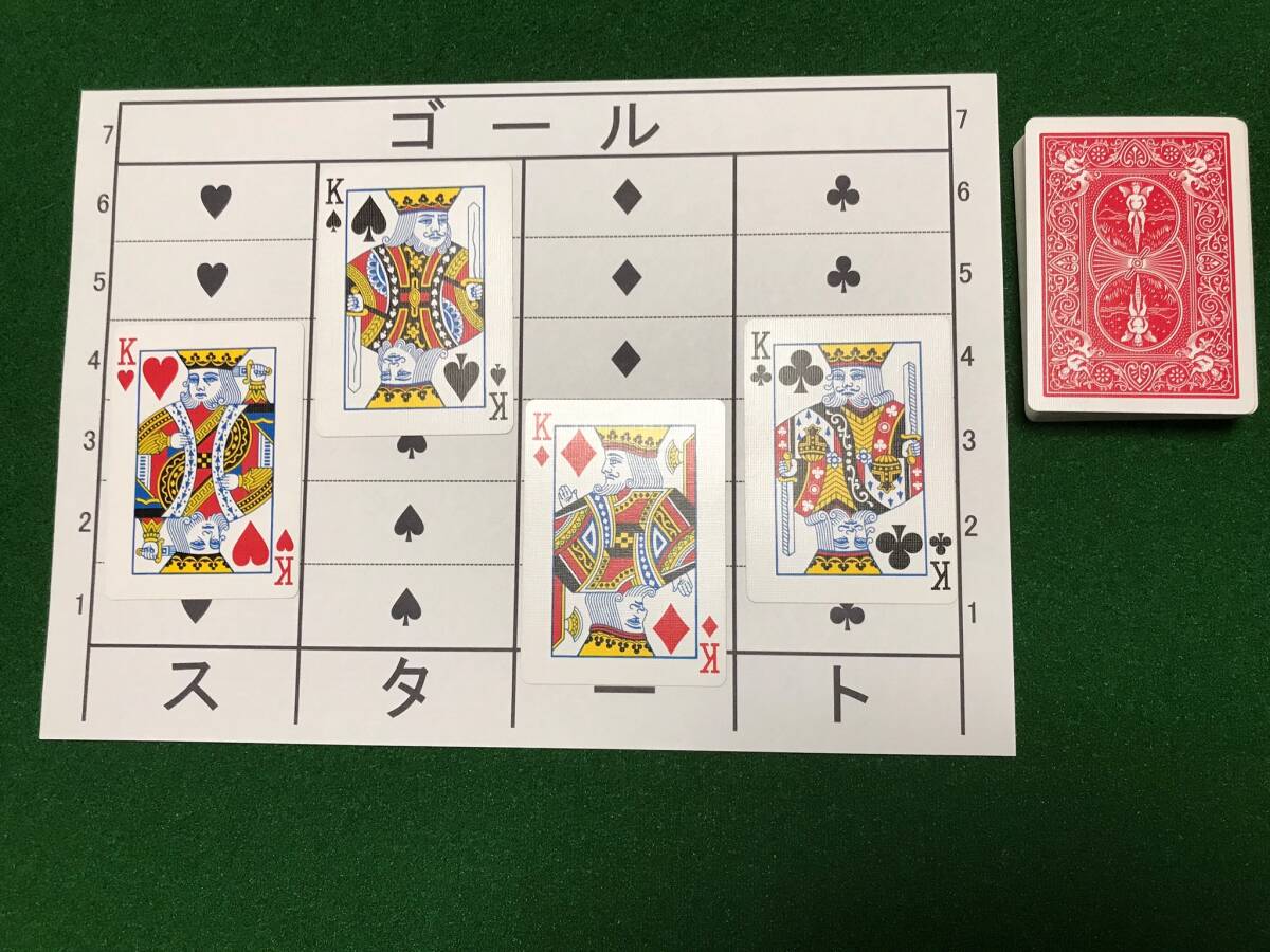 4枚のカード(K)を馬にたとえて、スタートラインに並べます。