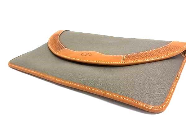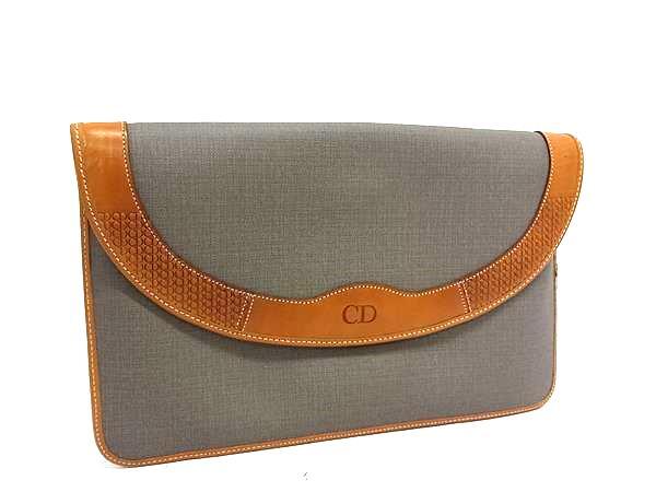 1円 ■美品■ ChristianDior クリスチャンディオール ヴィンテージ PVC×レザー クラッチバッグ セカンドバッグ グレー系 FV0352