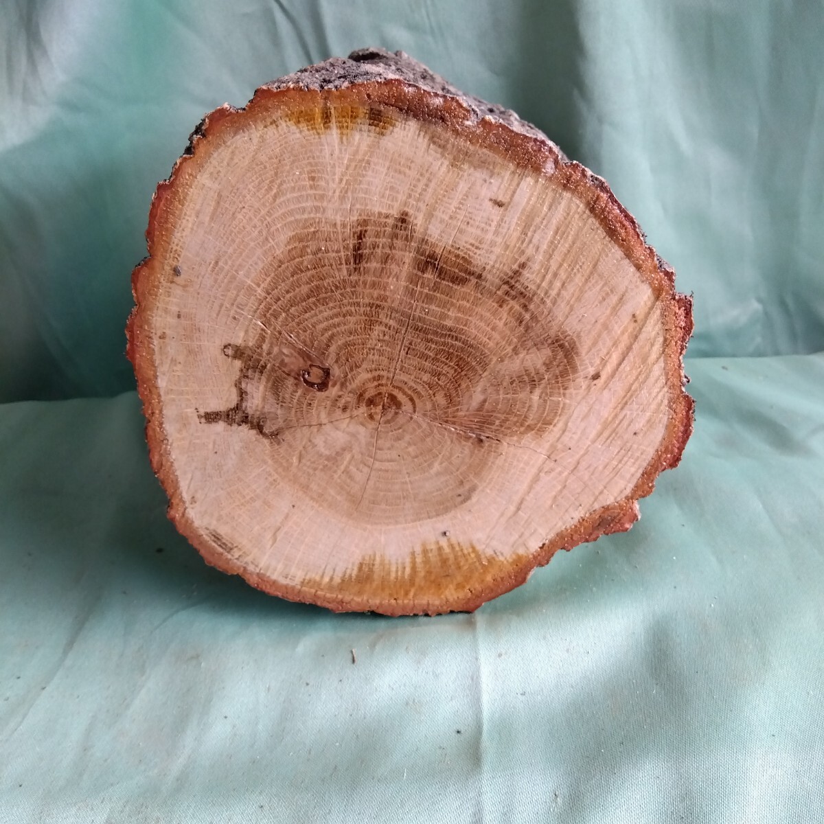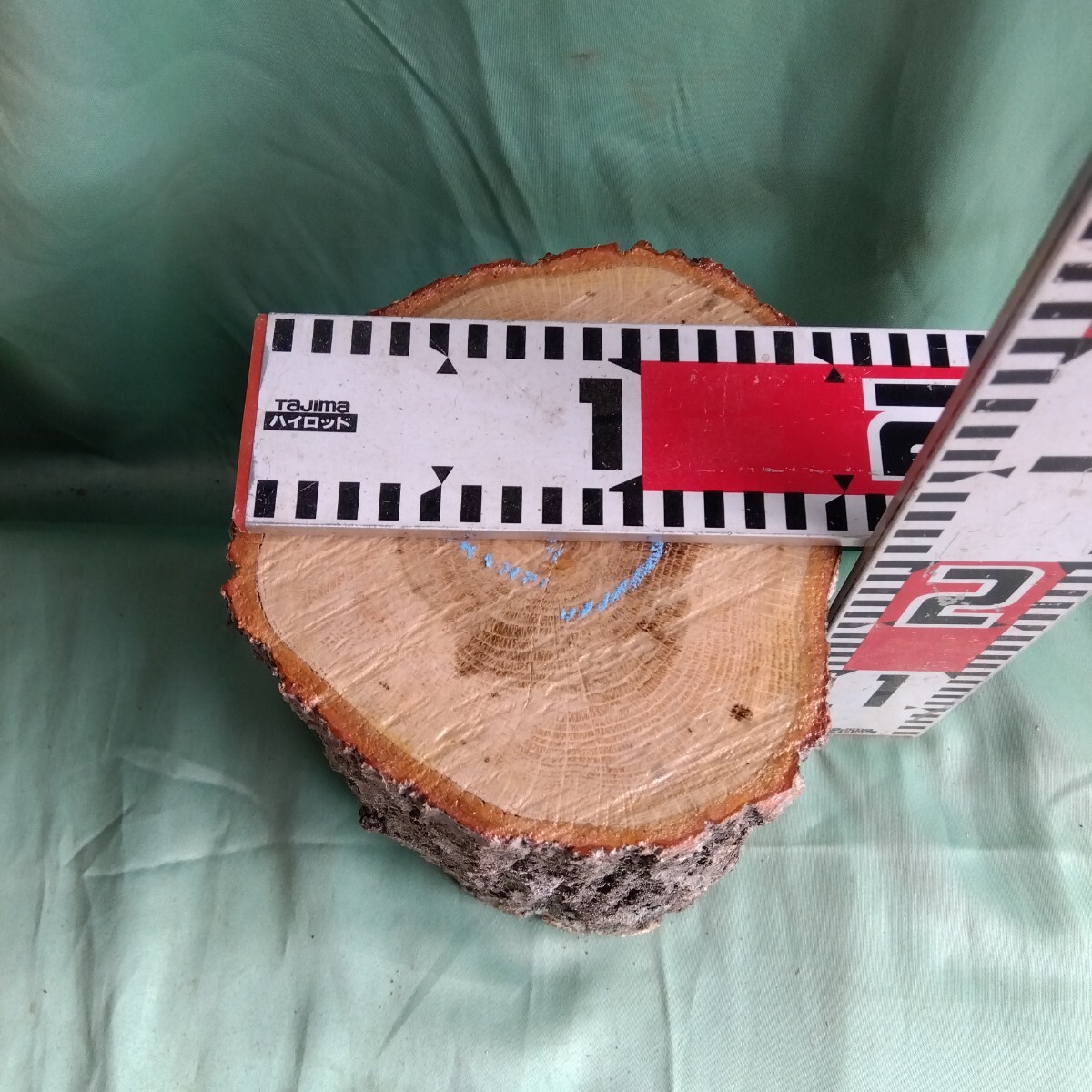 数日前に伐った楢の木(なら、ナラ)の玉切りです。切断面は軽く研磨して、急激な乾燥軽減する様に木工ボンドで目止めしてみました。側面は樹皮がまだしっかりしてるので軽く汚れ落として有ります。また、環境の変化で多少、ヒビ、割れ、カビ出たりする事も有りますし、ご購入時には多少ヒビ増えたり、表状変わってたりしますから、自然木の特性ご理解いただける方にお願いします。画像からご判断、ご納得出来る方居ましたら宜しくお願いします。アイデア次第でお使い下さい。発送はおてがる配送の60サイズに成ります。尚、土、日、祝日はフリーマーケットやハンドメイドマーケット出店の為、翌日の発送に成りますが、即決価格ですからタイミングみてご購入いただけたらスムーズな発送出来ます。宜しくお願いします。ありがとうございます。
