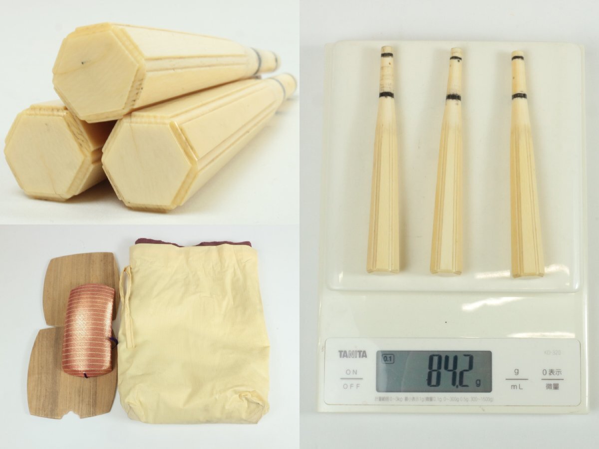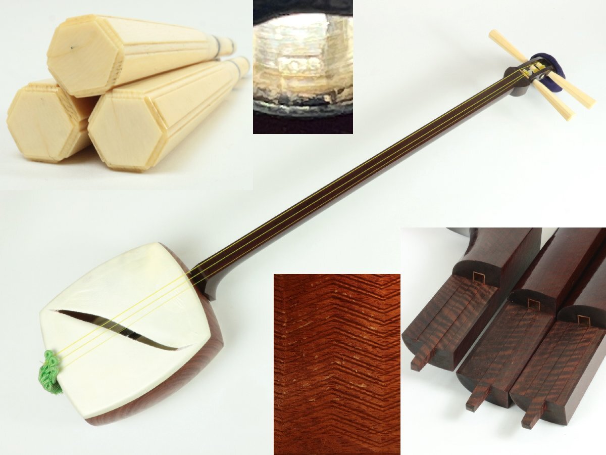 品名】 紅木三味線 中棹 子持ち綾杉胴 三ツ棹 金ほぞ 一本溝 福林K18刻印 トチ入 高級糸巻き 民謡 地唄 和楽器 弦楽器 【状態】 経年による多少のスレ、ヨゴレがございます。 皮の破れがあるため、ご落札後ご自身でのメンテナンスをお願いいたします。 上記を含む商品の状態・詳細を写真にてご確認いただき、納得された場合にのみご入札をお願いいたします。 【大きさ】 全長:約99cm 棹の太さ:約2.4cm 胴サイズ 18.2×20cm (採寸につきましては多少の誤差があるかと思いますので、予めご了承ください。) |