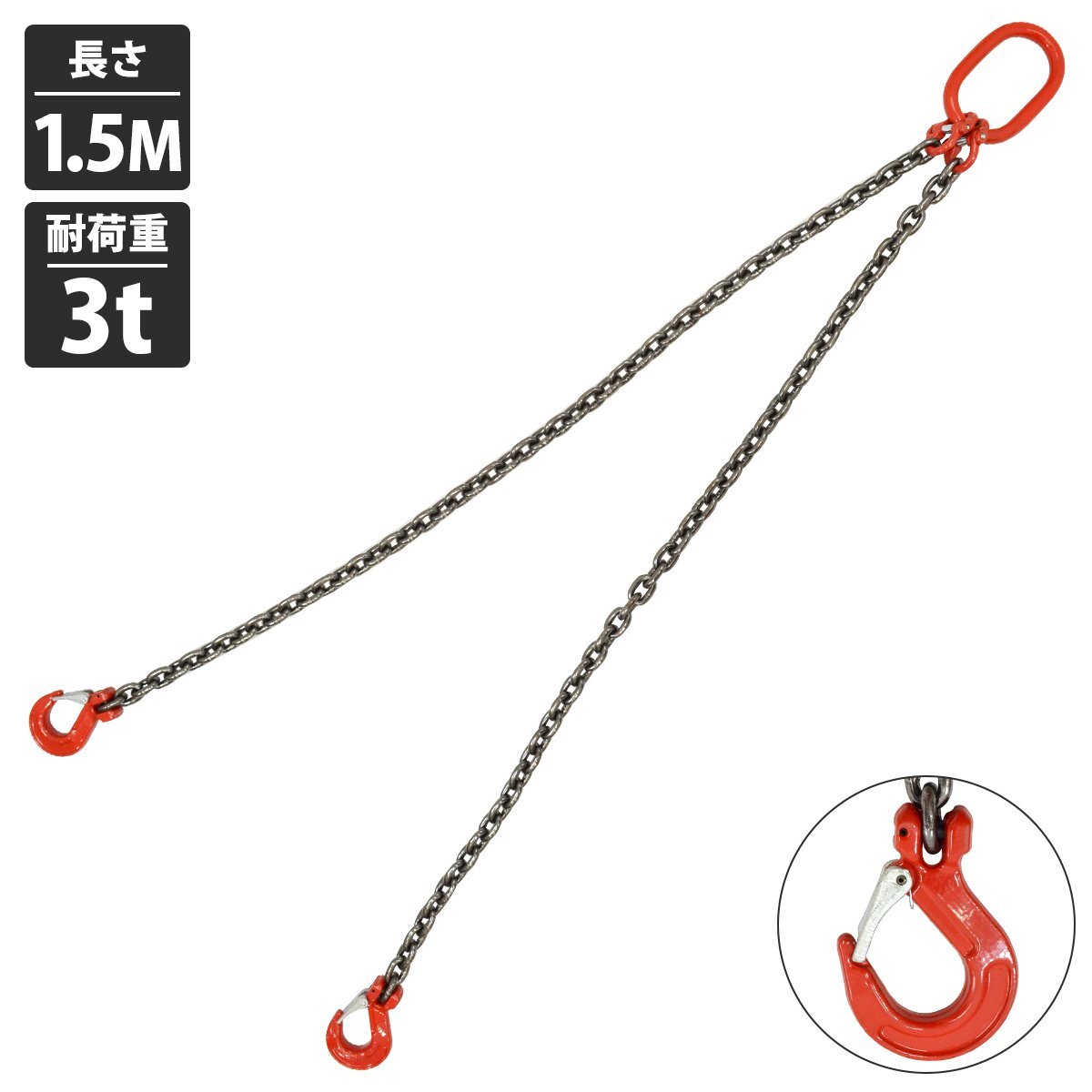 [ 3t 1.5M ]2本吊り チェーンスリング 吊り スリング チェーン フックタイプ リング付き 径10mm 長さ 1.5m 耐荷重 3t 3000kg