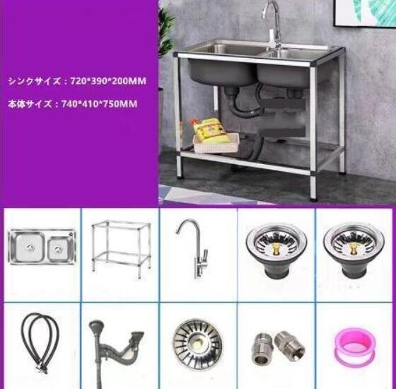 大容量 簡単に安装★ 家庭用★ キッチンツール シンク 流し台 台所 便利 手入れが簡単 多機能 2槽シンク