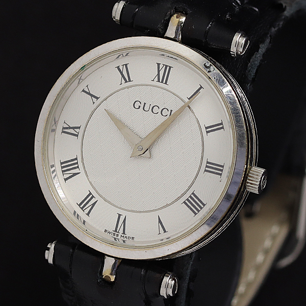 1円 稼働 グッチ シェリーライン QZ シルバー文字盤 メンズ腕時計 7099100 9RSG MST