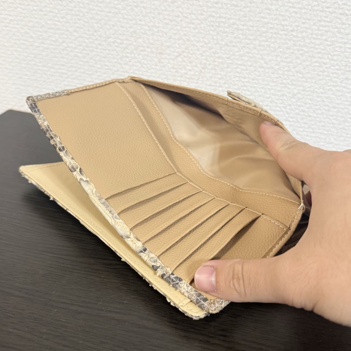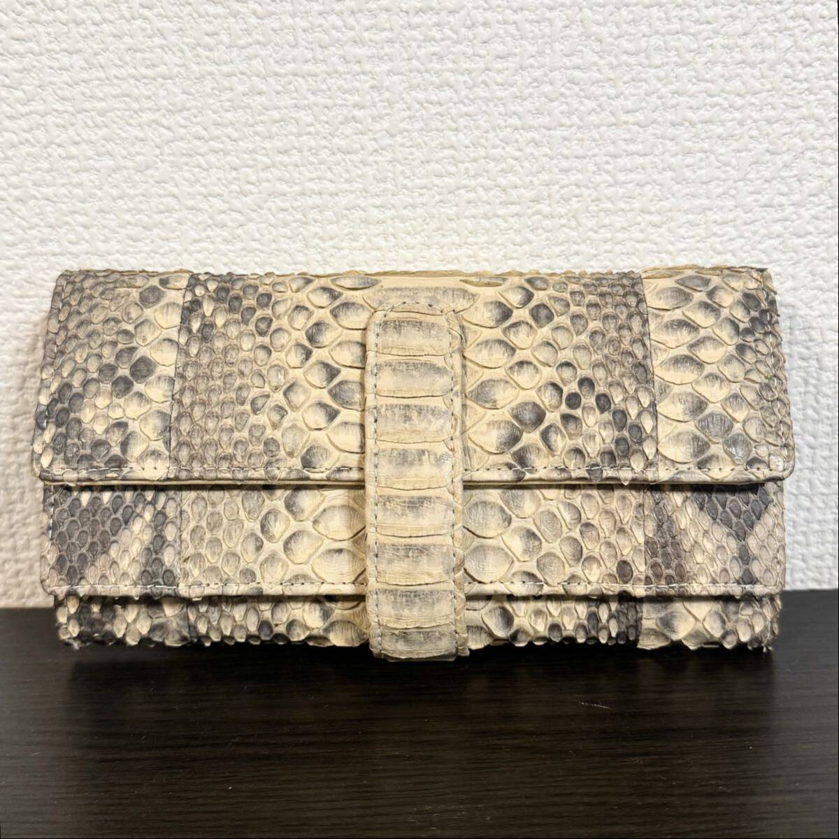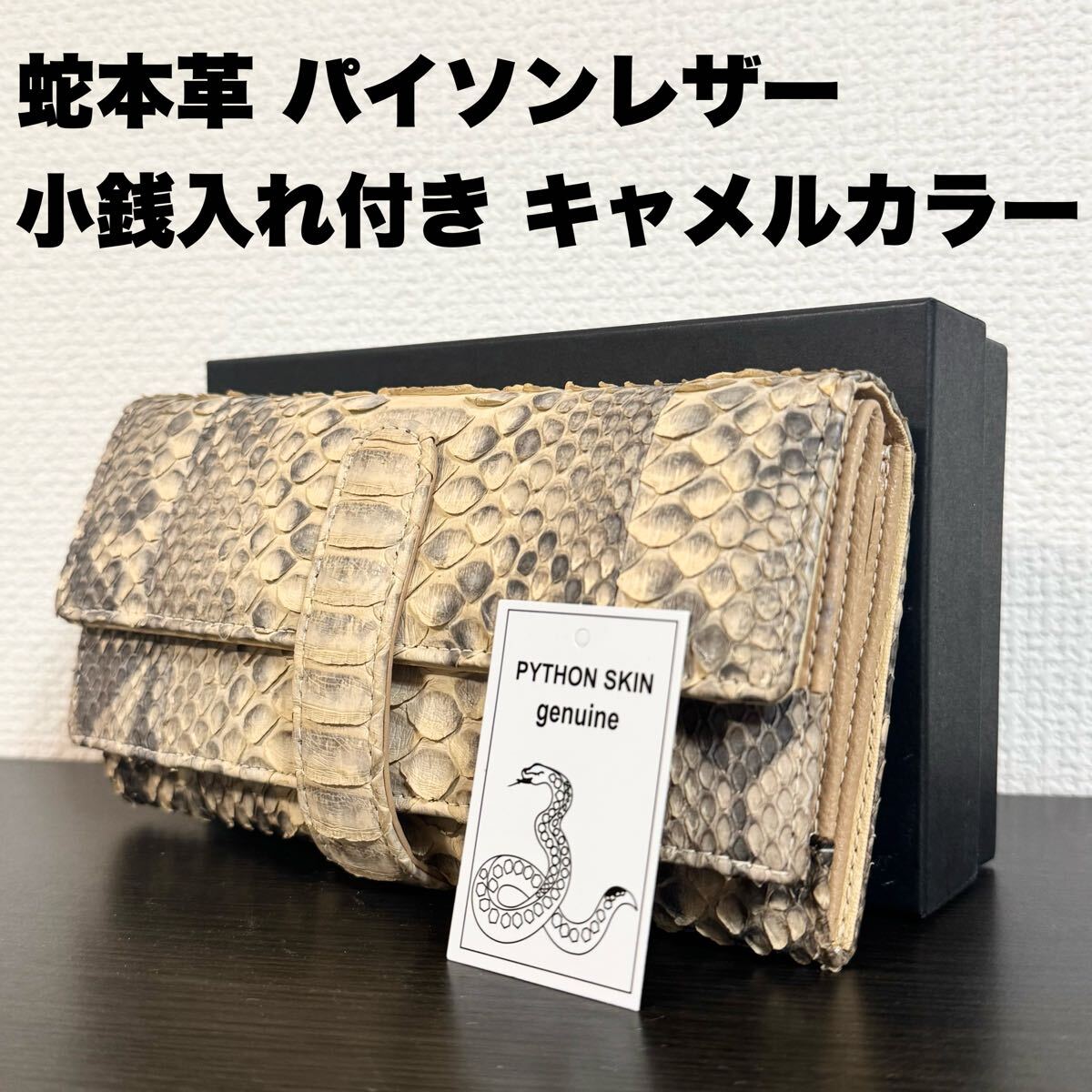 パイソン本革の長財布(キャメル)になります。