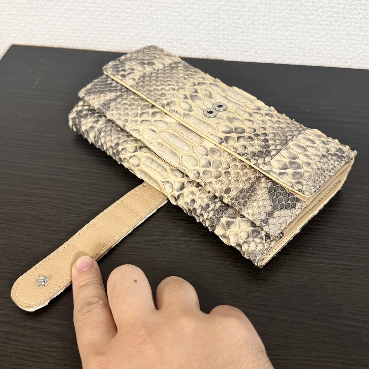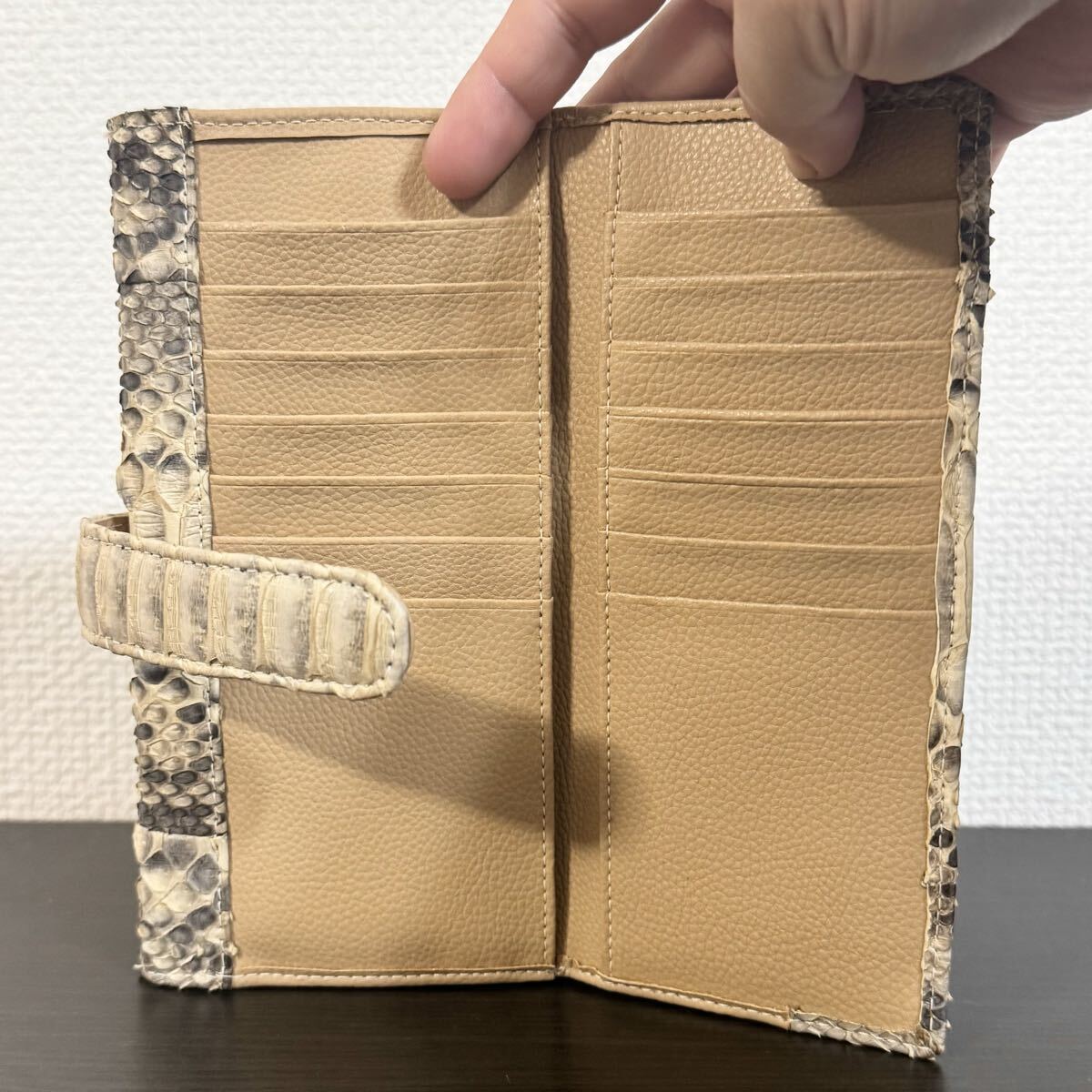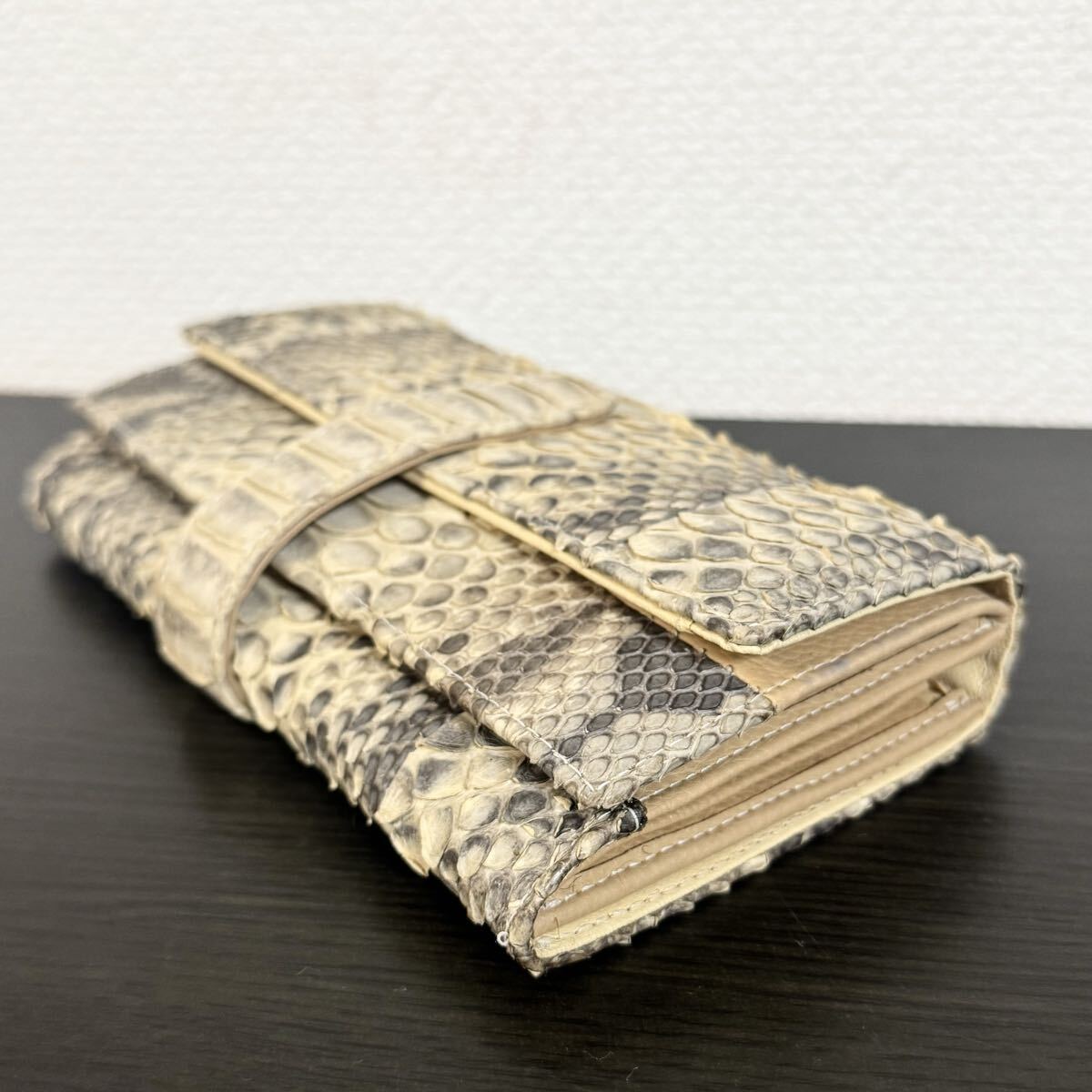 パイソン本革の長財布(キャメル)になります。