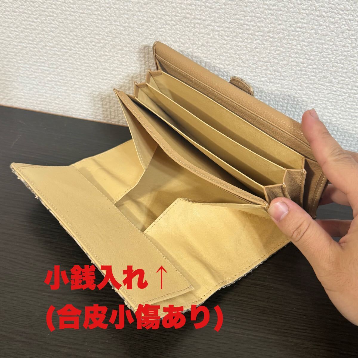 内側ベージュ色の合皮に僅かなスレや小キズ・ベタ付きが御座います。