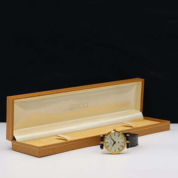 1円 箱付 稼働 グッチ シェリーライン QZ アイボリー文字盤 メンズ腕時計 7099100 9RSG SMZ