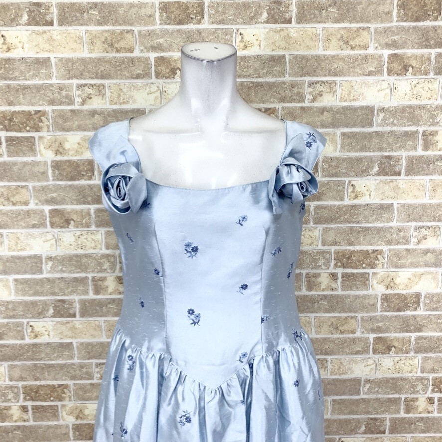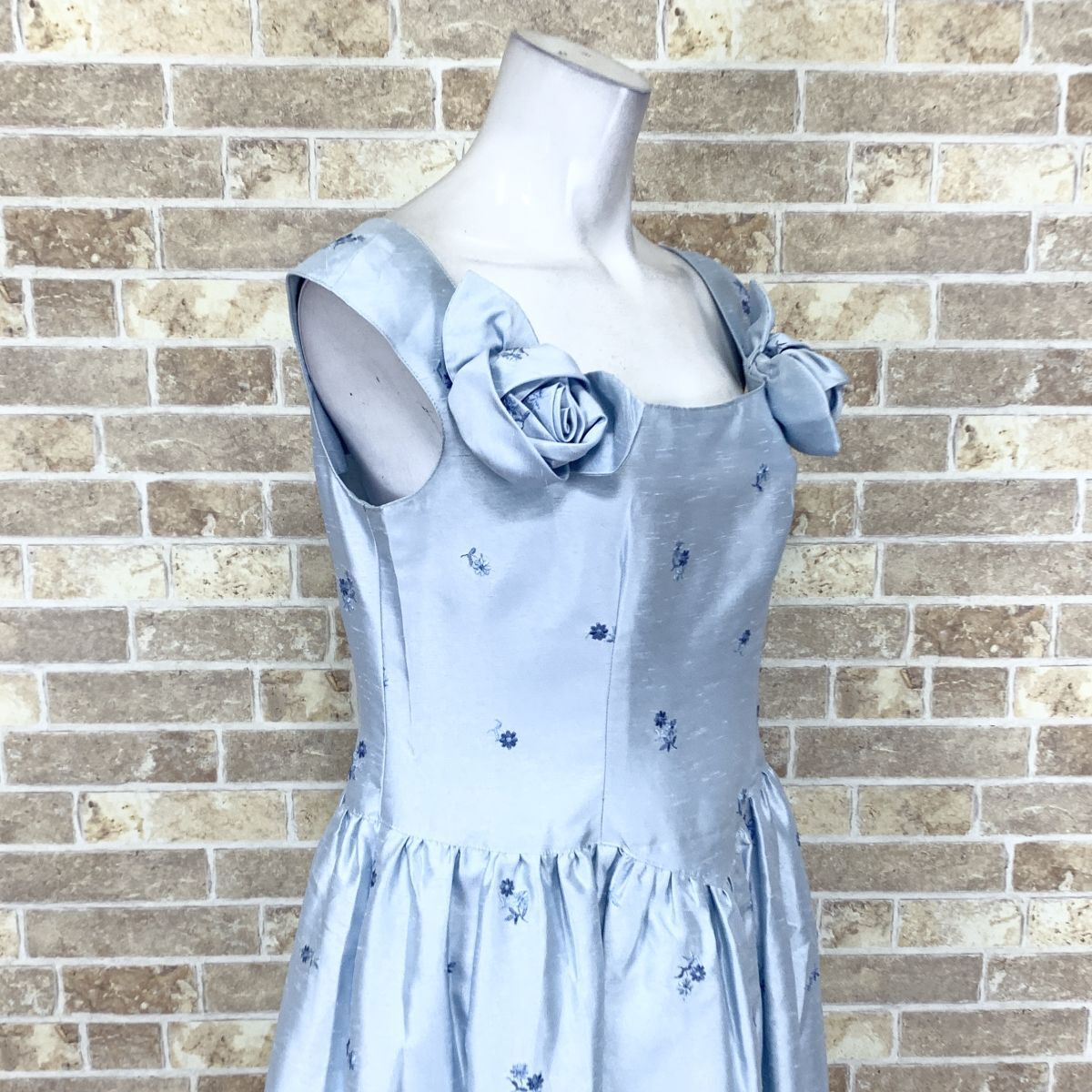 1円 ドレス ロングワンピース 青系 大きめサイズ カラードレス キャバドレ 発表会 イベント 中古14711