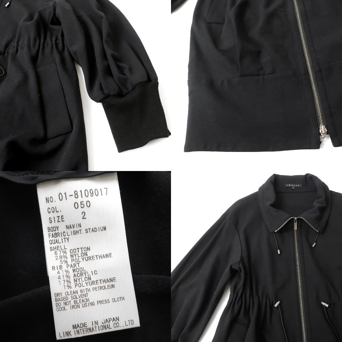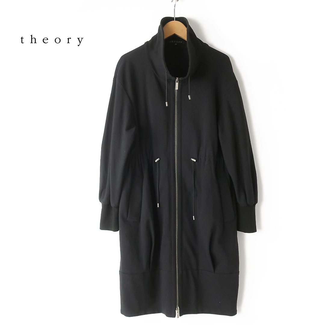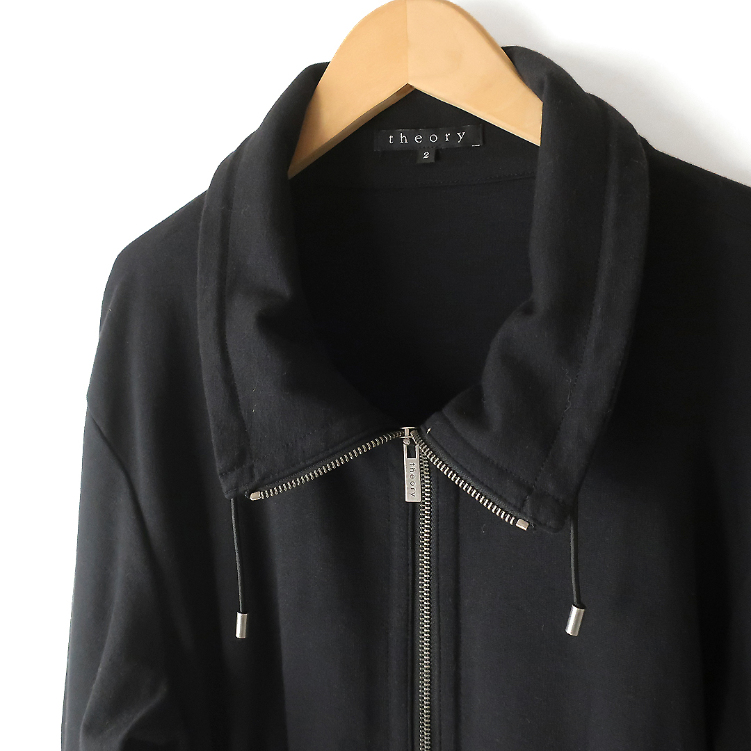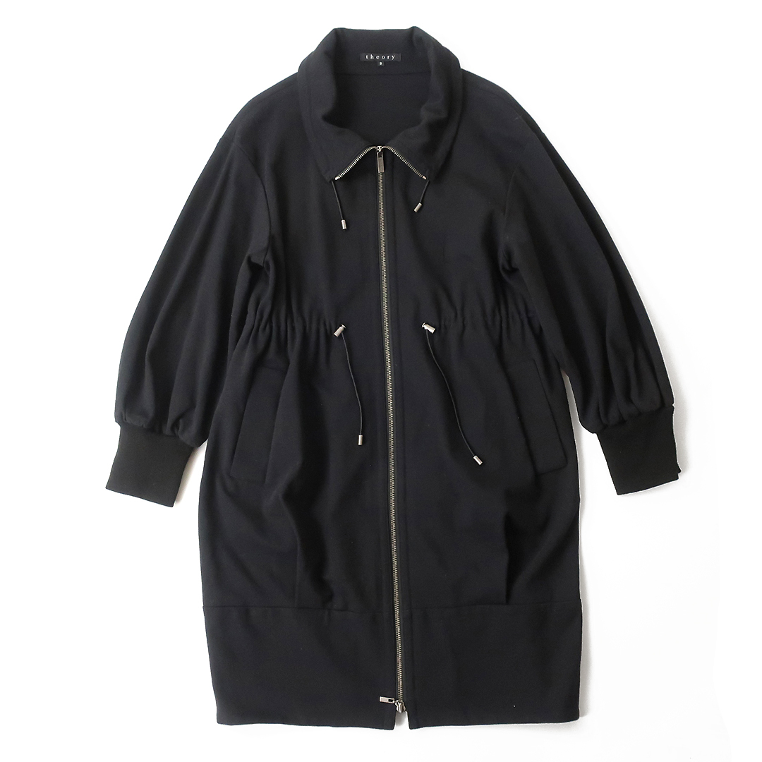 Theory セオリー ストレッチジャージスウェット生地 リラクシーコート ハイネック/ダブルジップ ブラック 2(M)
