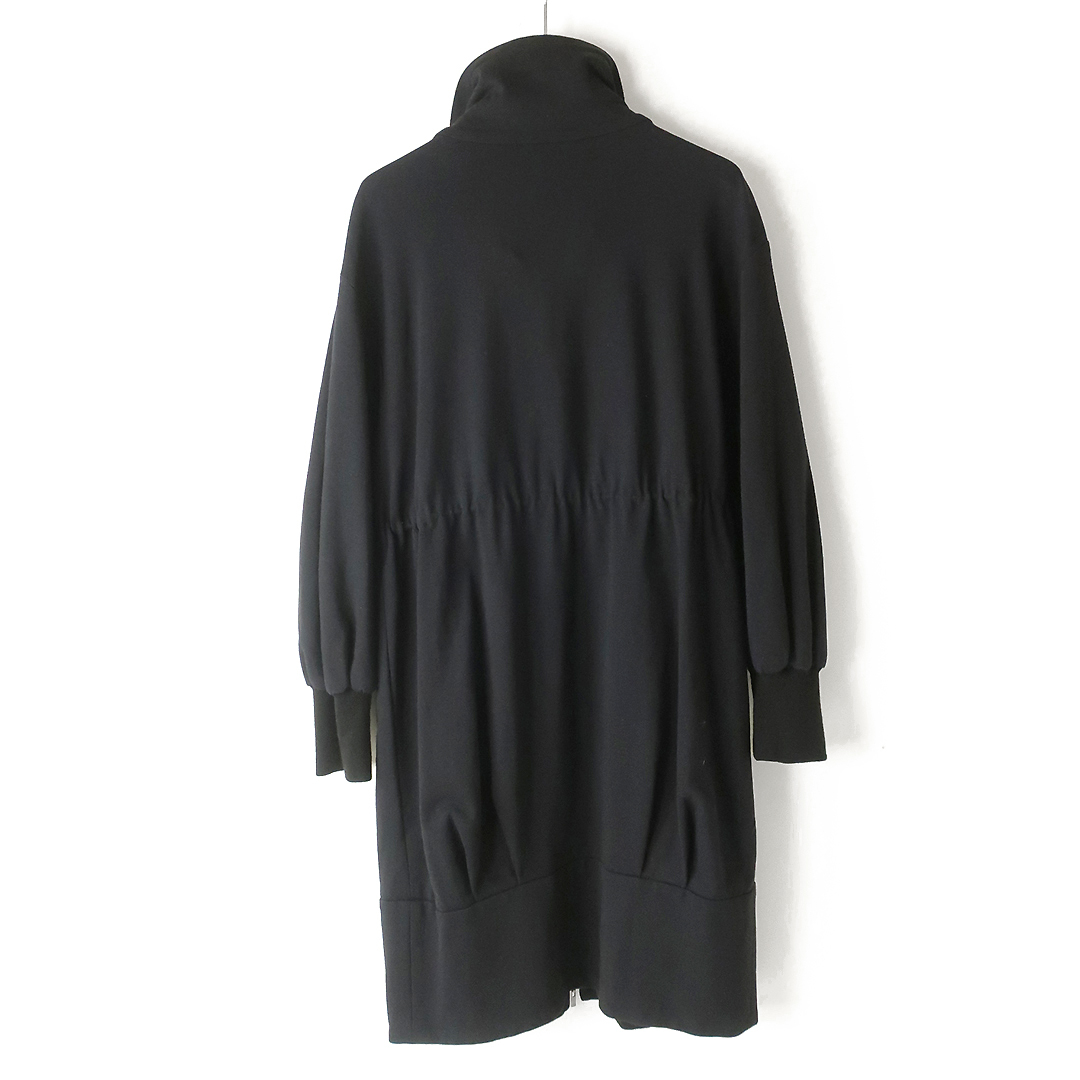 少しルーズなシルエットとワイドなハイネックが印象的なジップアップコートです。