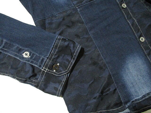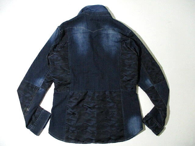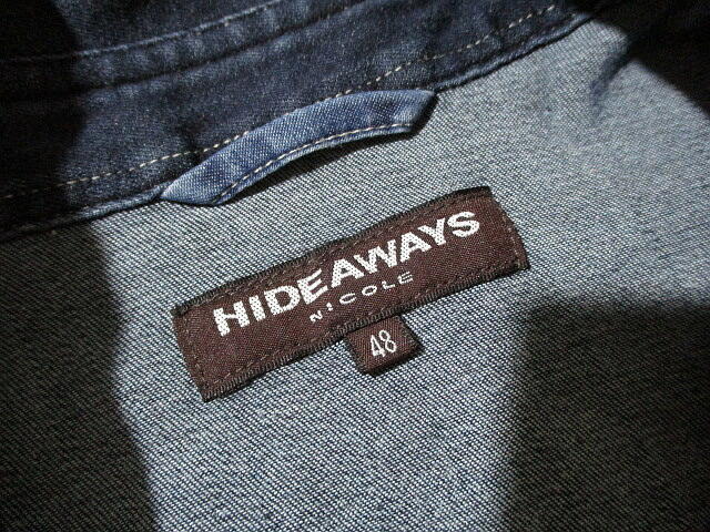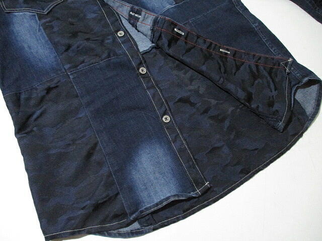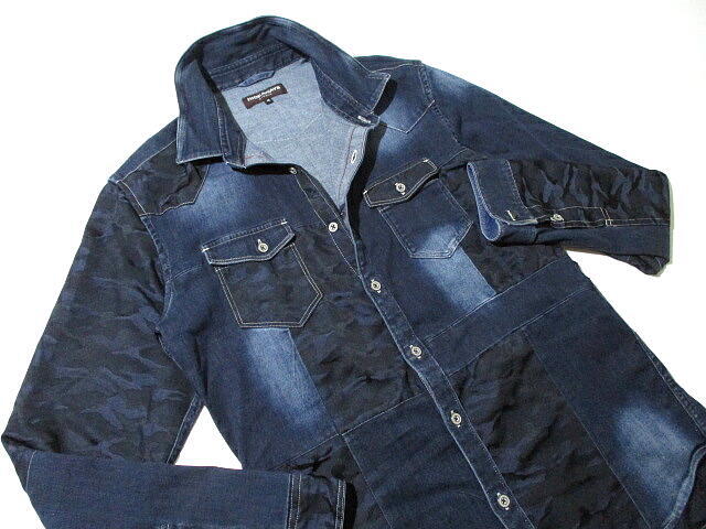 秋物▼ ニコル 長袖シャツ デニム パッチワーク 衿ワイヤー メンズ 48 Lサイズ HIDEAWAYS NICOLE インディゴ染め
