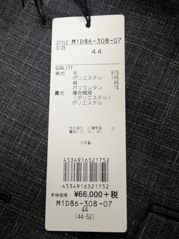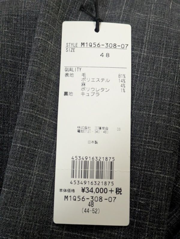 新品タグ付き 未仕立て epoca uomo エポカウオモ 麻混ウール 2ボタン シングルスーツ 背抜き ジャケット 44 パンツ 48