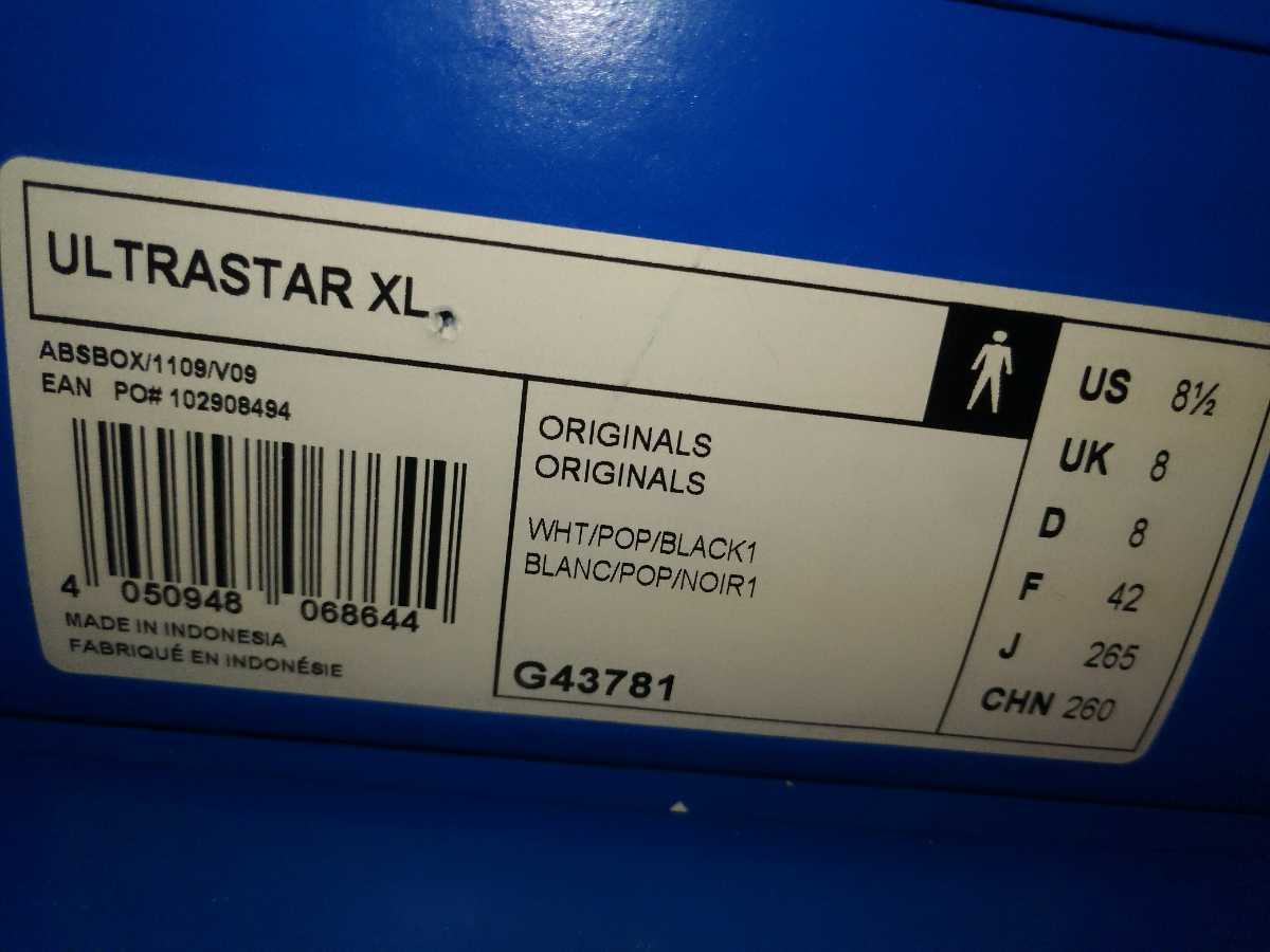 限定 11年 貴重なデッドストック 新品adidas ウルトラスター XL 白/ピンク 26.5cm オリジナルス リフレクタービッグトレフォイルロゴ