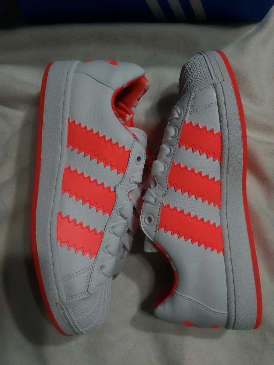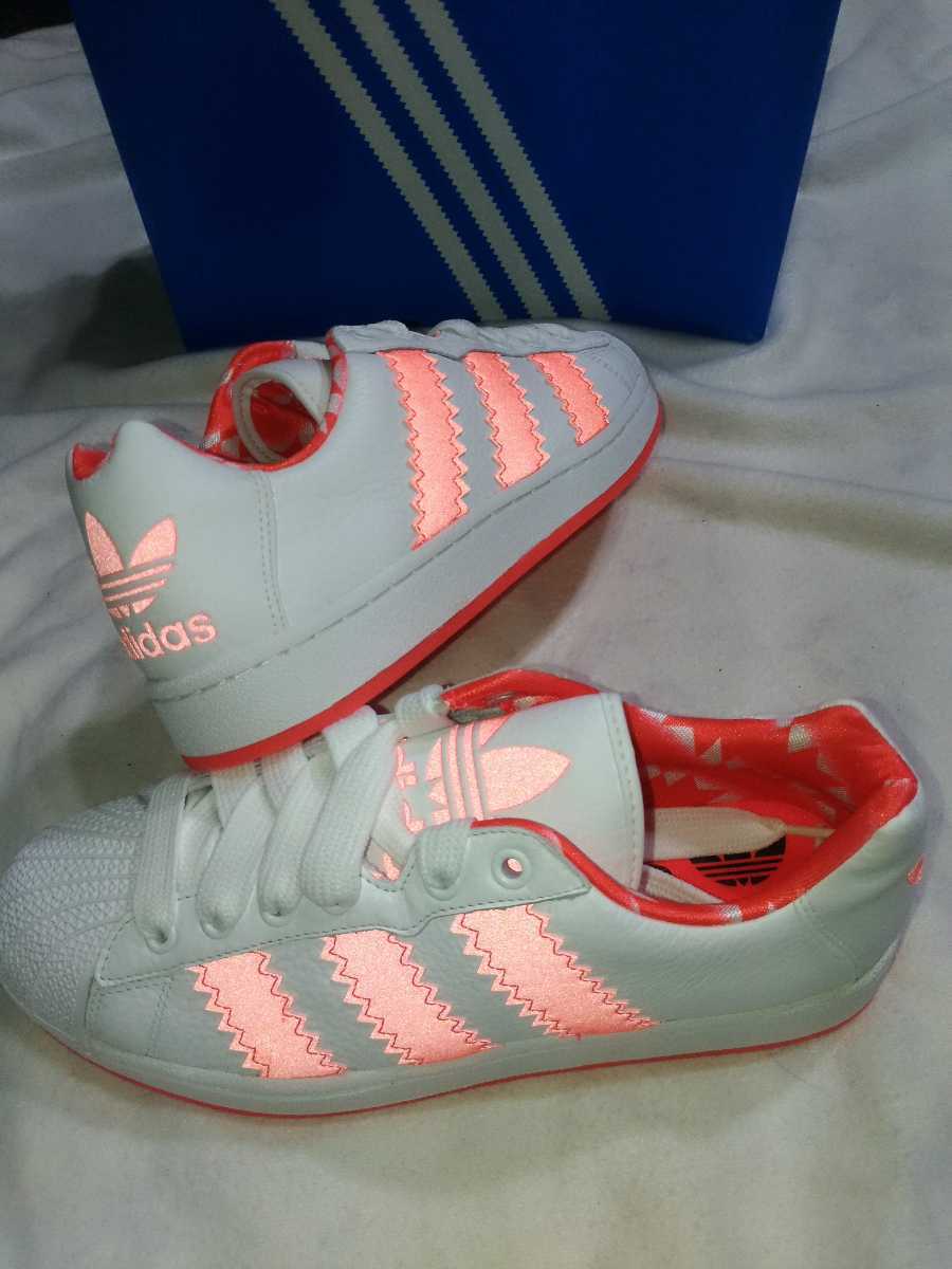 お探しのお方必見です。在庫もわずかになってまいりました。26.5cmはラスト1足になります。新品入手困難のadidasオリジナルス  ウルトラスター XL 白/ピンク  当サイズもほぼ入手困難ですのでお見逃しなくしてください。トレフォイルロゴを含めホワイト以外の部分は全てリフレクター(反射素材)で夜間はかなり目立ちます。9~10枚目写真はリフレクター発光時の写真です。(写真参照) 新品未使用タグ付き、替え紐付きでアディダスジャパン正規店購入ですが2011年モデルとかなり昔のモデルとなります。コレクター様にもかなりおすすめではありますが10年以上前のお品となります。当方が見る限り状態良好ですが、素人保管品です。気を付けて冷暗室保管ですが古いものですので使用後の保証はできませんのでご了承くださいませ。保管に伴う変色や、色やけ、加水分解はございませんが接着剤の劣化は使用してみないとわかりませんので使用後の不備などに対してはノークレームノーリターンをご理解いただけるお方のみご入札お願いいたします。少しでも不安なお方はトラブルの原因になりますのでお控えください。素材は天然皮革(本革)となります。