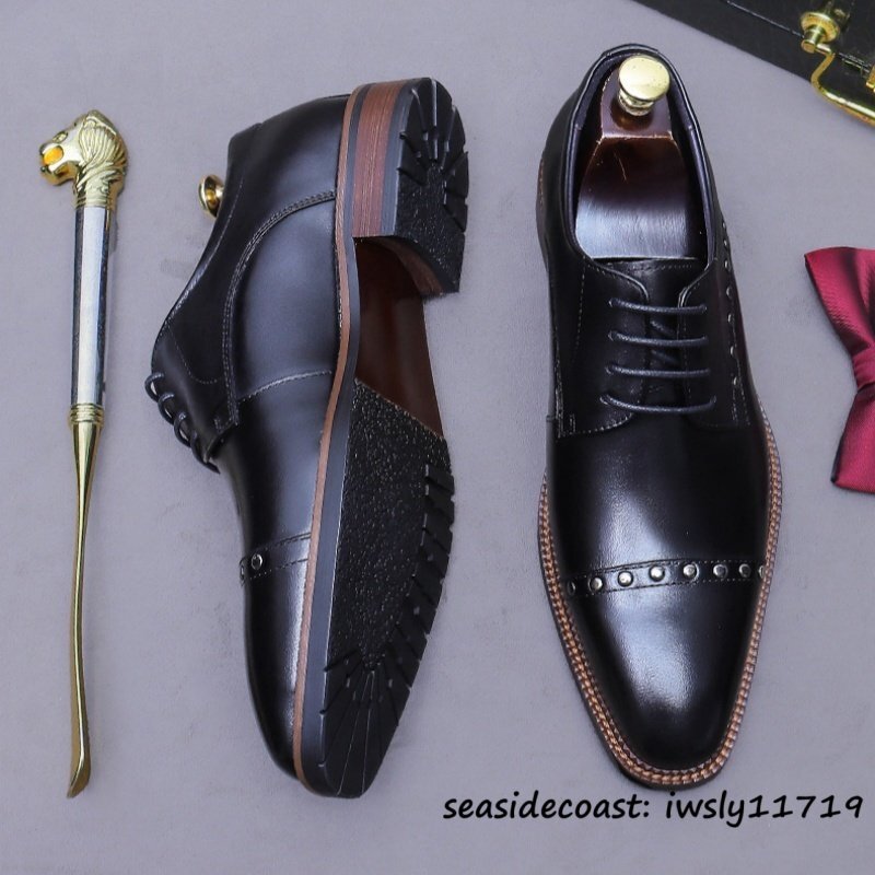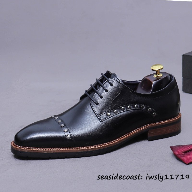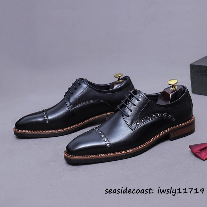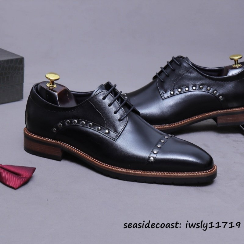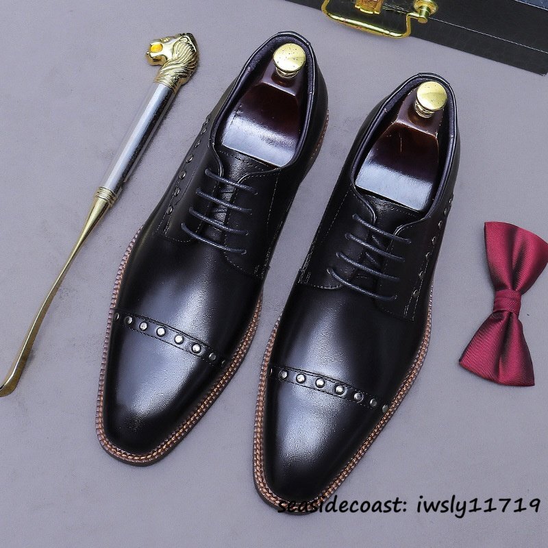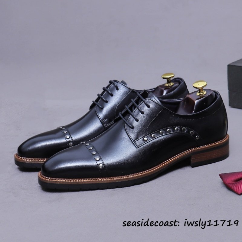 超希少◆ビジネスシューズ メンズ 本革レザーシューズ イギリス風 彫り 職人手作り 高級牛革 紳士靴 革靴 フォーマル 新品 ブラック 27.0cm