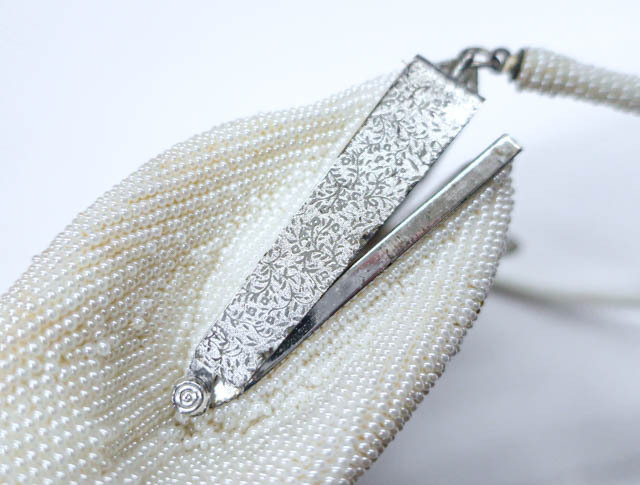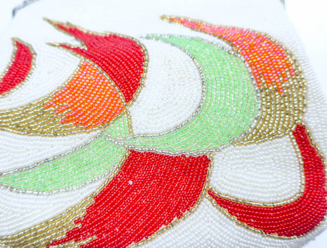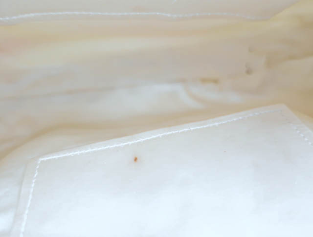 リサイクル商品ですので、中に薄汚れ、表の所々にシミ汚れがございます。 また、小さな傷や、表のビーズが1つとれておりますが、ご使用頂けると存じます。 |