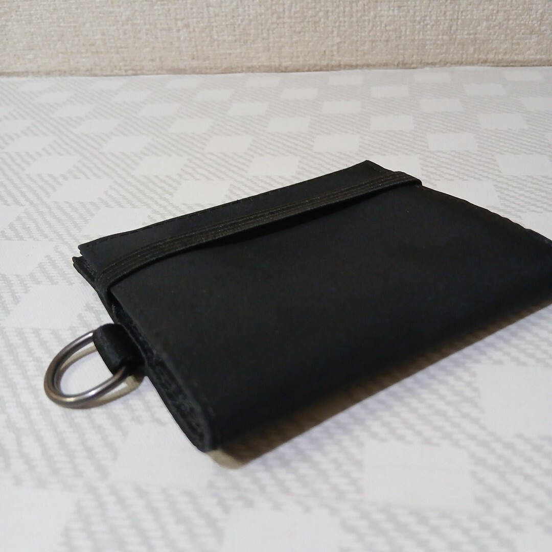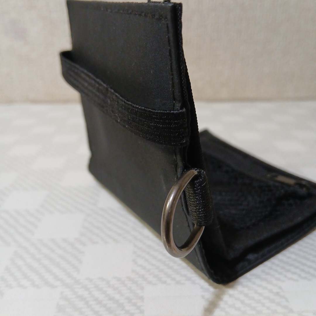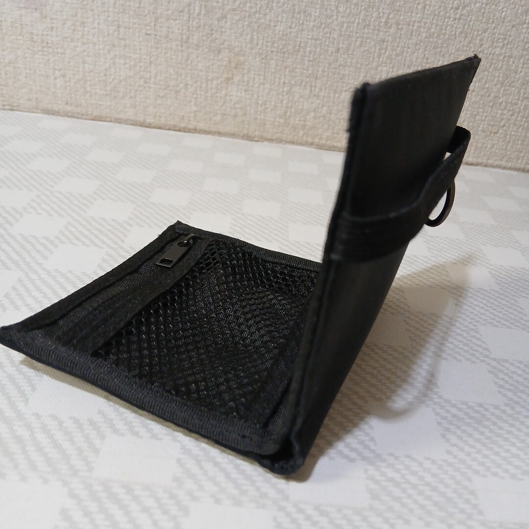 ジッパー付アミ小銭入れ/カードホルダー4ヵ所/札入れ2ヶ所/ゴムバンドのホールド/上部にD カン/全長110×180/畳んだ状態110×96くらい。