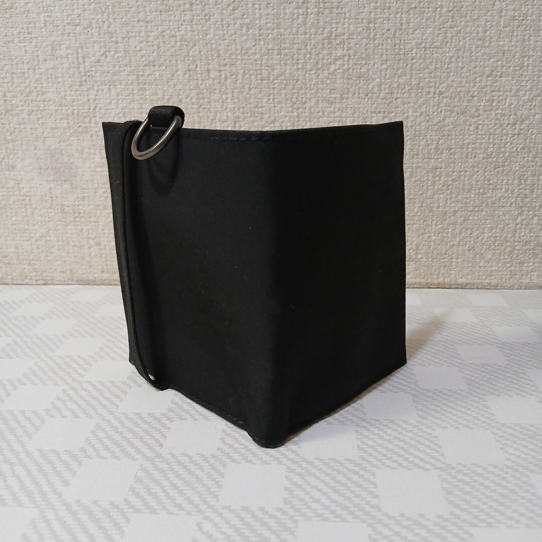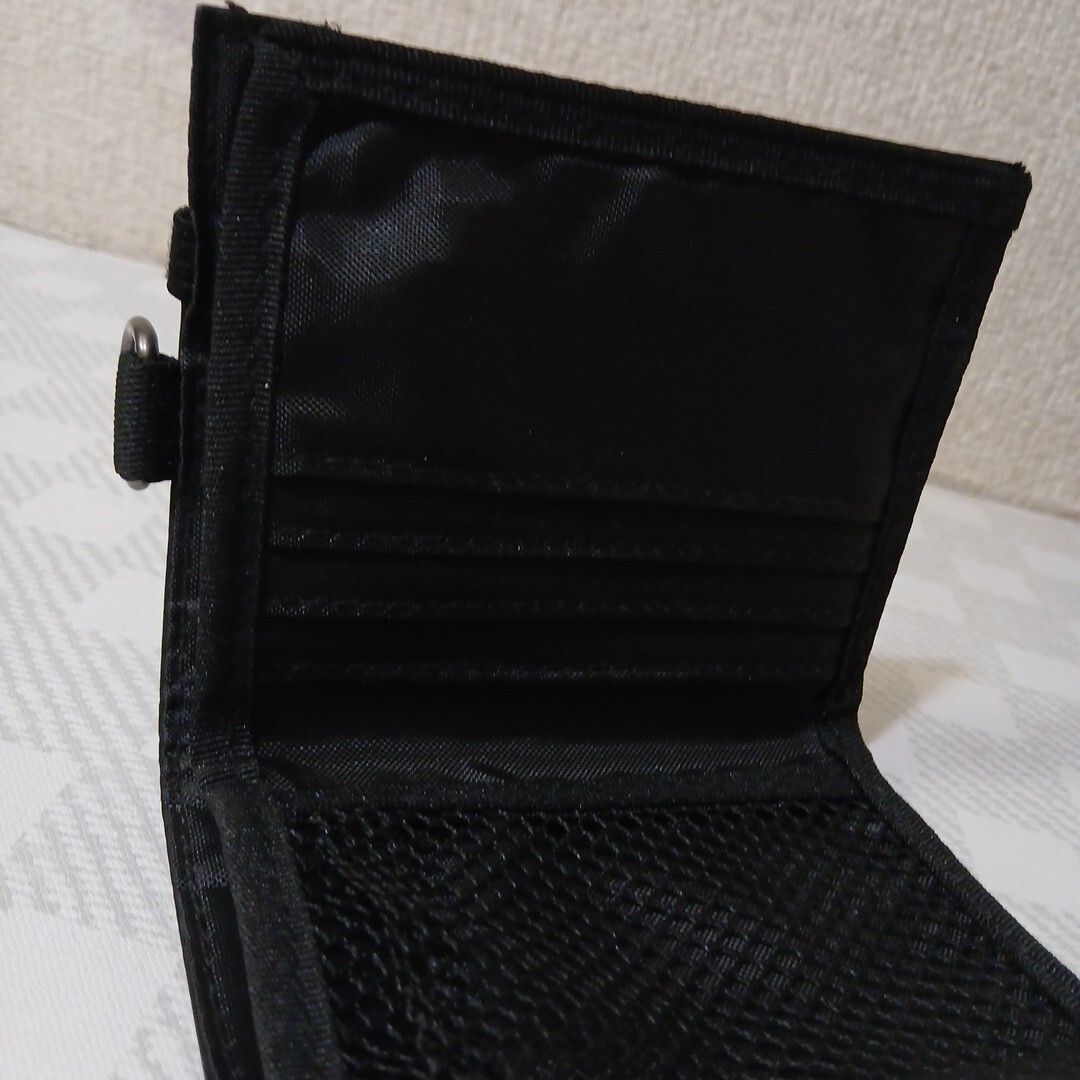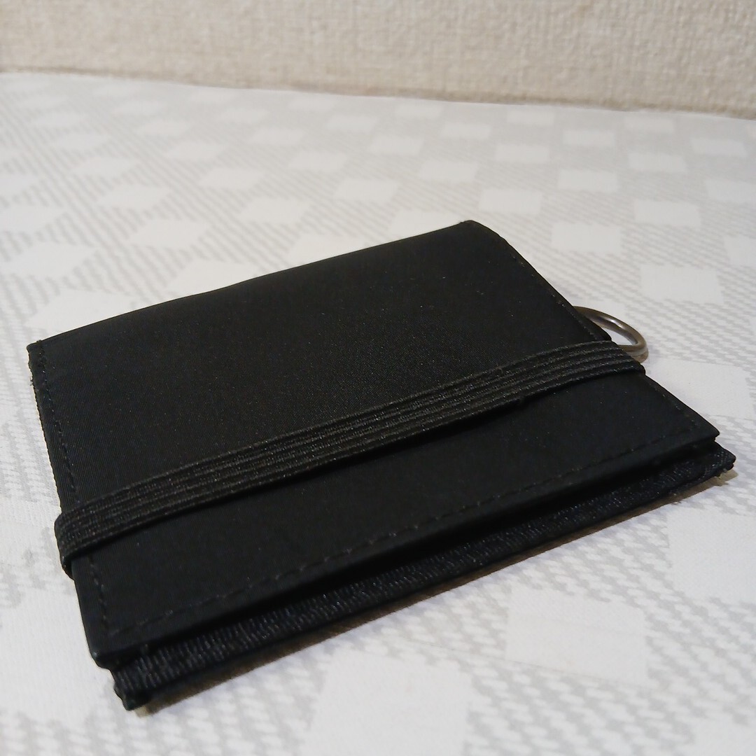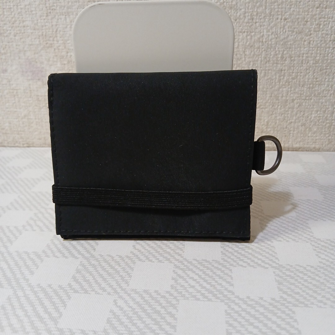 ジッパー付アミ小銭入れ/カードホルダー4ヵ所/札入れ2ヶ所/ゴムバンドのホールド/上部にD カン/全長110×180/畳んだ状態110×96くらい。